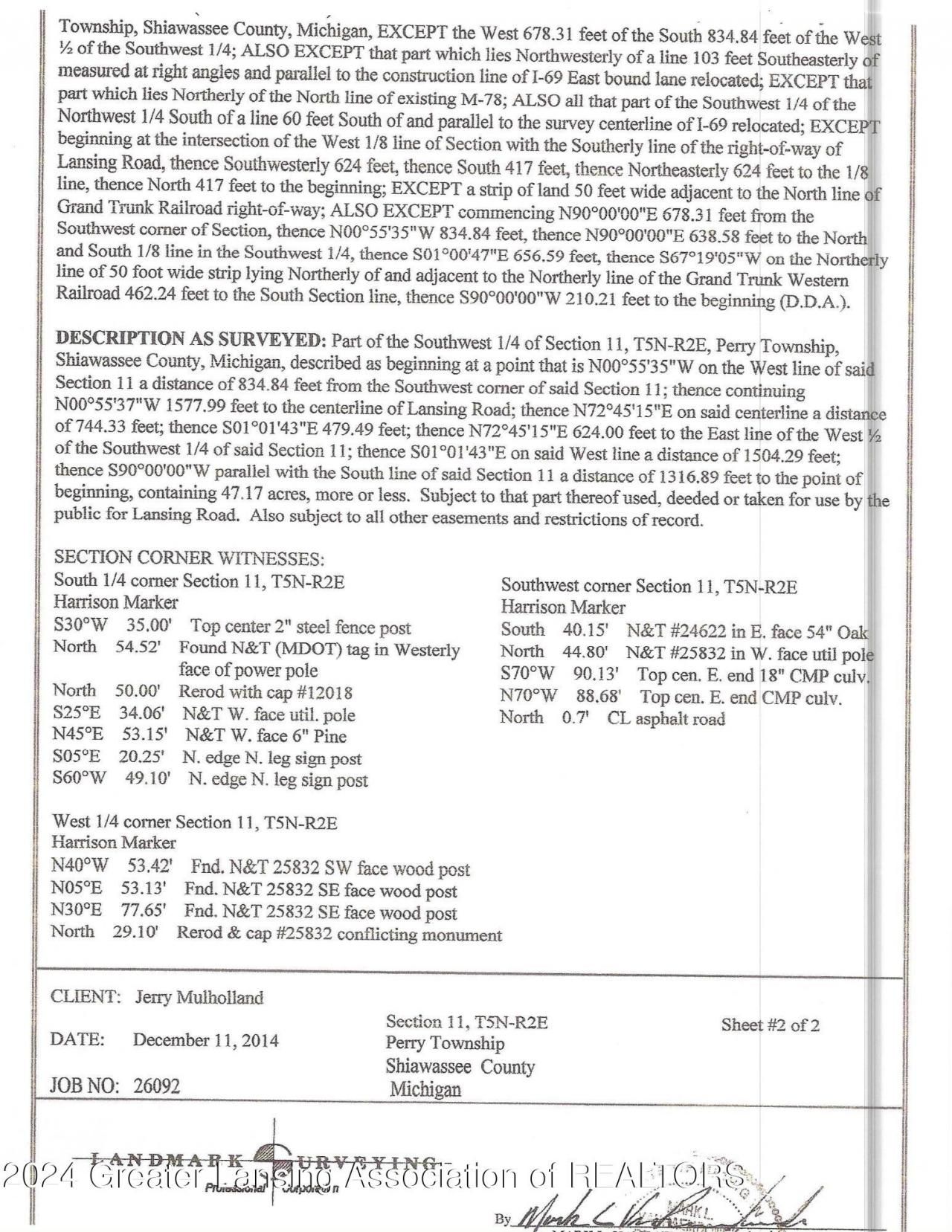 Very nice 47 Acre Parcel with good view from I 69 and close to the interchange at M52Public Sewer is at Bennett DrVery few large parcels in the area with high visibility from I 69 and on class A Road possible smaller parcels splits