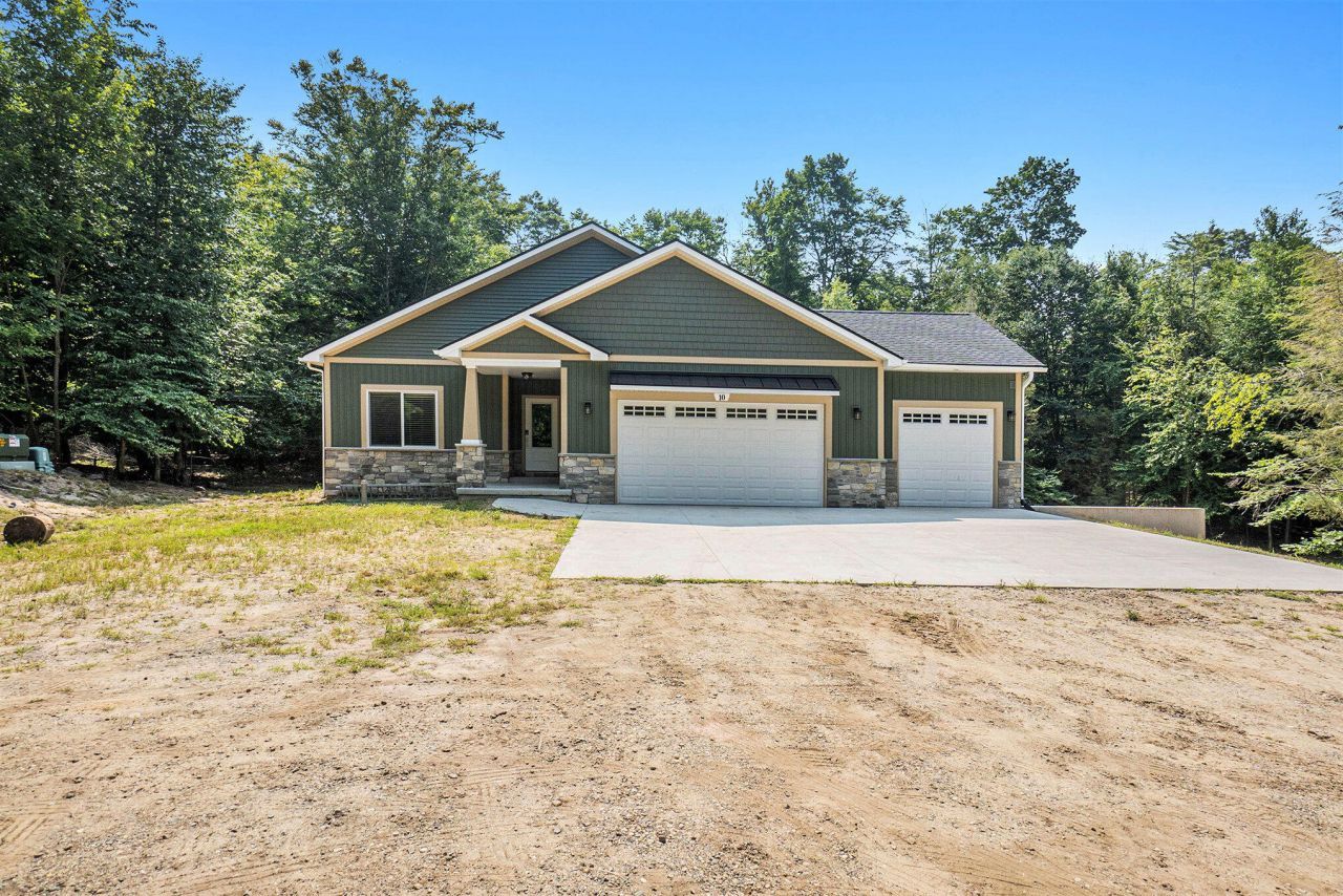Tucked away on a peaceful 1.6-acre wooded lot, this stunning custom home, built in 2023, offers 5 bedrooms, 3 bathrooms, and 1,500 feet of private association access to Lake Michigan?an opportunity you wont want to miss. Step into a warm and inviting foyer that opens to a spacious, open-concept living and dining area. The kitchen features soaring cathedral ceilings, a center island, stainless steel appliances, and plenty of room to entertain. A cozy sunroom just off the living area includes a hot tub and leads to a beautiful deck?ideal for relaxing or hosting guests. Dont miss this rare chance to own a secluded, lake-access gem.