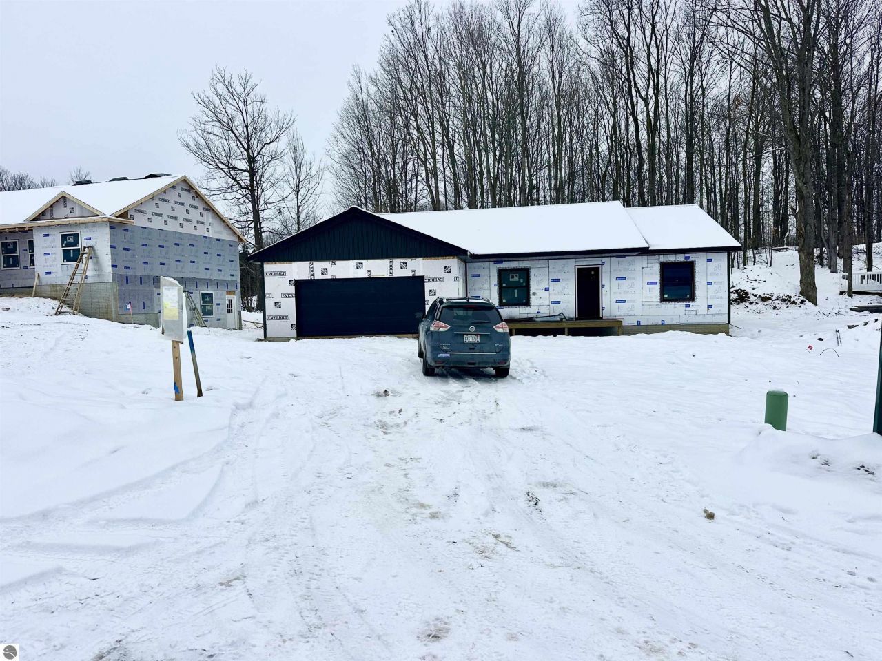 Perfectly nestled among the trees you will find this Brand New 1800 sq ft Ranch with an open floorplan and vaulted ceilings. The home will have burnt sienna siding with black trimmed windows. A quintessential representation of Northern Michigan. This is like a hidden gem behind the Birmley Hills subdivision. Primary suite is on one side of home and 2 bedrooms and a full bath on the other side. This home has it all including central air, city water and sewer, main floor primary suite with walk-in closet with built-ins, double granite vanity, and custom tiled shower. One floor living at its best with main floor laundry! Maintenance free decking, 24 x24 garage, full basement with egress window and plumbing for a third bath. Minutes to shopping, schools, and groceries! Fall in love with the luxury vinyl flooring! The kitchen is a show stopper with soft-close cabinetry in the hue of smoked cashew adorned with the highest grade of Granite. Matte black cabinet pulls will be installed. The lovely tile backsplash sets the modern tone. Large bedrooms and nicely appointed baths. Designer lighting package, dishwasher, microwave, garbage disposal, gutters, irrigation, and hydroseed are all included. This is truly the perfect home package with the benefit of being the first owner and of course the peace of mind of a one year warranty. Dues are only $40 per month to cover roads and snow removal plus liability insurance on all common ground. Fences are allowed from back of home with developer approval. Pictures include a few finished product pictures and will be updated as we progress. You can write an offer now and have 7 days to inspect once home is complete. Most popular floorplan of all! Secure this NOW!