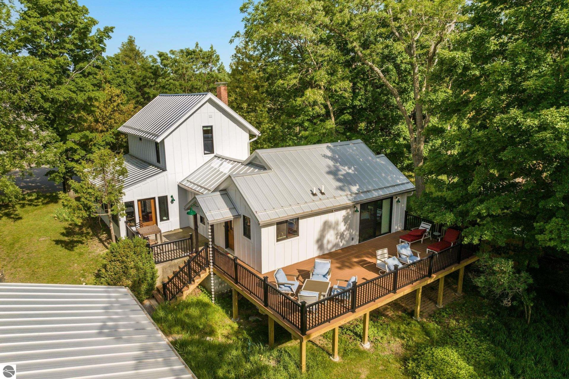 Set on 2.38 private acres with 127 feet of frontage on South Bar Lake, this distinctive property offers a rare blend of charm, character, and versatility near the Village of Empire. The main farmhouse has been thoughtfully updated while maintaining its inviting feel, featuring well-defined living spaces, a spacious kitchen and dining area, and a cozy living room with a wood-burning fireplace and built-in bookshelves. The main level includes one bedroom and a full bath, while the upper level offers two additional bedrooms and a shared bath. A 22x15 three-season room and expansive outdoor deck provide functional bonus living spaces that seamlessly incorporate the outdoorsâ??ideal for relaxing and entertaining while taking in the natural surroundings. Near the turn of the 20th century (some records indicate circa 1894), a traditional carriage house/barn was added, reflecting the areaâ??s rich architectural heritage. In the early 2000s, a detached one-car garage with an accessory dwelling was added, offering excellent flexibility for guests or extended stays. The setting is peaceful and private, with a beautiful blend of deciduous trees and open meadow creating a classic Leelanau landscape, along with frontage on South Bar Lakeâ??perfect for a short kayak trip across the lake with access toward Empire Beach. Originally built by a respected local craftsman known for contributing to several notable historic structures in Empire including DH Day Barn, the property carries a subtle connection to the areaâ??s past. Today, it presents a unique opportunity to enjoy waterfront living with space, privacy, and multiple-use potential, all just moments from Empire, Sleeping Bear Dunes, and Lake Michigan.