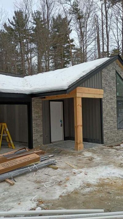 Home currently installed electrical, plumbing, well, HVAC and siding coming. See updated photos! Custom-built modern ranch by Dave Netti Homes on nearly an acre of wooded property near Sand Lakes public boat launch. This zero-entry home features 36 doorways, vaulted ceilings, 3 bedrooms, and 2 full baths including a spacious primary suite with heated floors and tile shower. The living room offers an electric fireplace with shiplap surround and TV outlet above the mantle. Kitchen highlights include Artisan Classic cabinetry with crown molding, soft-close drawers, solid surface counters, tile backsplash, custom island with shiplap, and a walk-in pantry with butcher block counter and microwave. Additional features: tankless water heater, Low-E insulated vinyl windows, laundry with stacked washer/dryer and butcher block counter, luxury vinyl plank flooring, carpeted bedrooms, and tiled primary bath. A thoughtfully designed home blending modern style, comfort, and lake-life convenience.