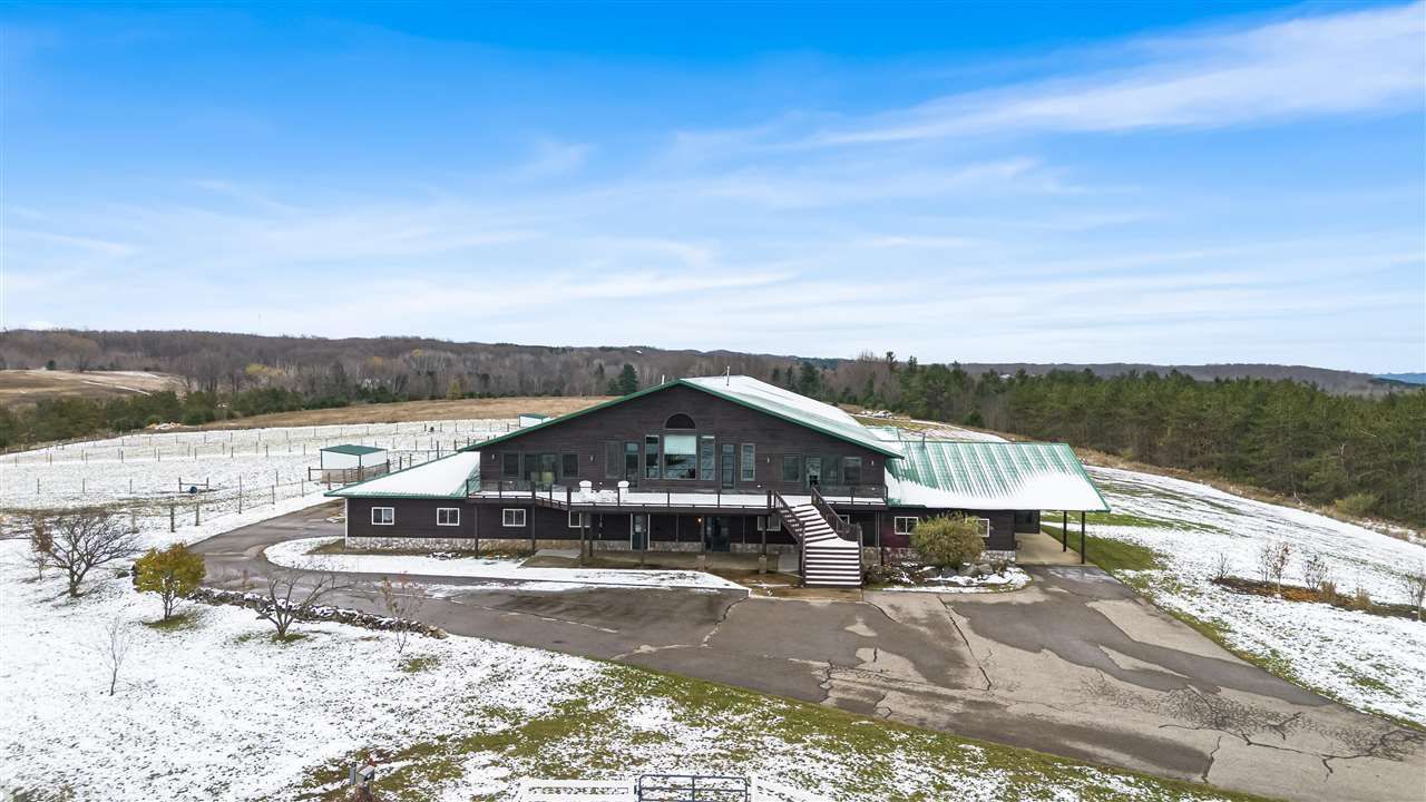 Discover one of Northern Michigan's most remarkable properties: a 180-acre equestrian and recreational estate with breathtaking views of the South Arm of Lake Charlevoix. The property also features 675' of lake frontage on Steele Lake. When the glaciers retreated from the area millions of years ago, they created the glacial moraines that tower 250 feet above the surface level of Lake Charlevoix. With a rich history of orchards and farmland spanning nearly 150 years, the estate currently produces a hay crop and offers expansive pastures, paddocks, and wooded trails for both horses and outdoor enthusiasts. The home and outbuildings have been extensively updated, including renovated bathrooms, fresh interior paint, new carpet, and a massive brand-new deck with custom railings. A newly updated guest apartment features a full kitchen, bath, bedroom, dining, and living area?perfect for caretakers, guests, or overflow accommodations. Horse facilities are exceptional, including 9 stalls, a 26,000 sq. ft. barn-dominium with an indoor arena, heated viewing area with kitchen, and newly installed heated waterers at each paddock. Outdoor amenities include a huge pole barn at the entrance for equipment storage, a large lean-to for additional storage attached to the arena, a historic fishing cabin at the lakeside with potential for renovation, and proximity to a boat launch on Lake Charlevoix. The property is ideal for hunting (offering food plots and fruit trees), fishing, and equestrian pursuits, all set in Michigan's prestigious Golden Triangle region. This estate perfectly combines luxury, functionality, and natural beauty, offering a private sanctuary with world-class recreational access, magnificent lake views, and versatile facilities for horses, farm operations, or outdoor adventures.