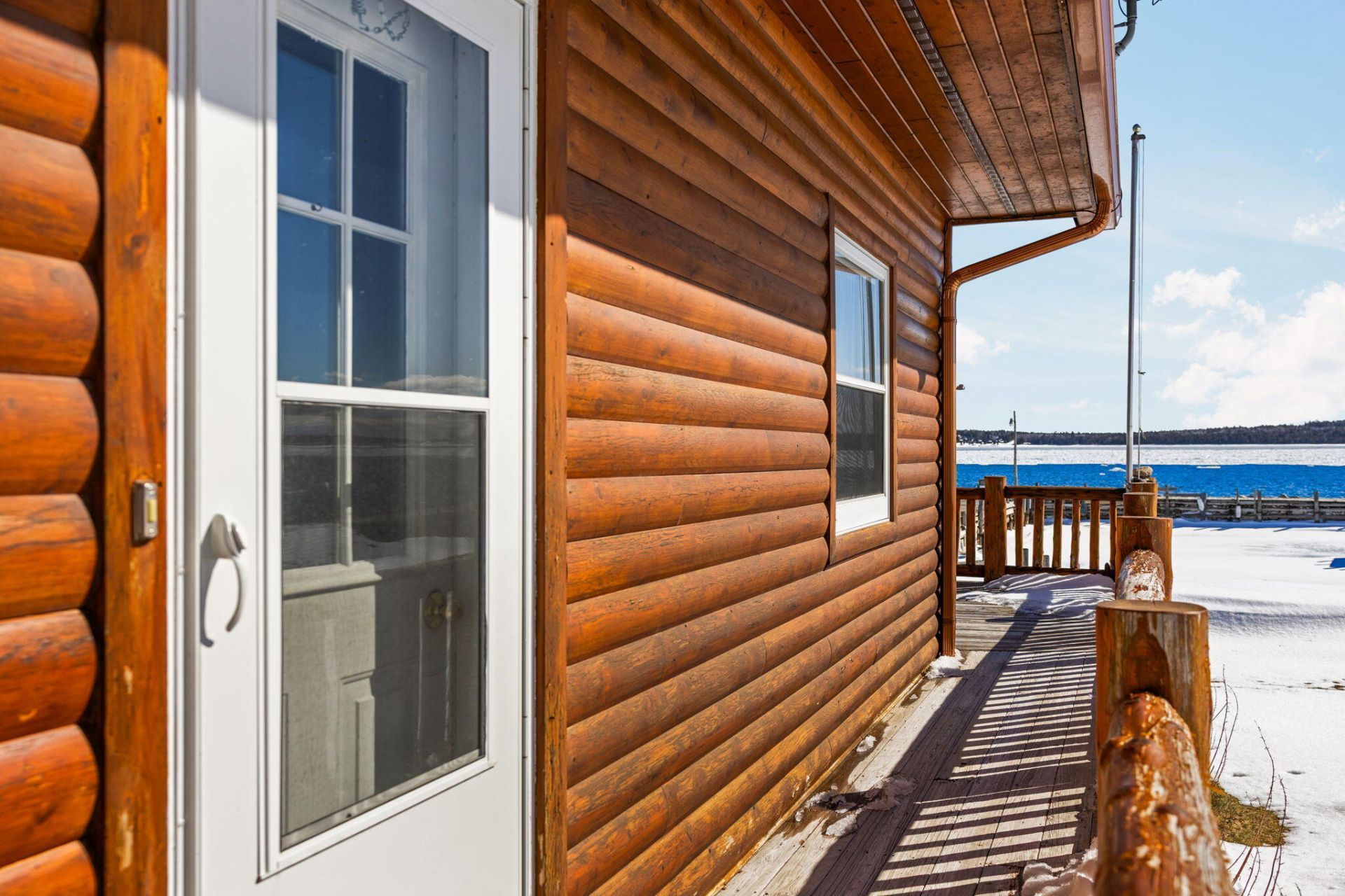 Welcome to your dream retreat, a stunning log-sided house nestled along the picturesque shores of the St. Mary's River. This exceptional 4 bedroom, 2 bathroom home offers plenty of space for the family to spread out. The spacious living areas boast an abundance of natural light, creating an inviting ambiance perfect for both relaxation and entertaining. The heart of this home lies in its breathtaking outdoor spaces. Step out onto the large deck, where you can enjoy gorgeous, panoramic views of the St. Mary River, the ideal backdrop for morning coffees or gatherings with friends and family. A balcony off the upstairs family room offers a private retreat, where you can watch the ferry to Drummond Island and the freighters go by. For boating enthusiasts, this property is a true gem.