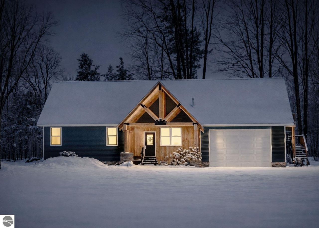 Welcome to this beautifully designed newer construction home located near Lake City, Michigan, offering space, privacy, and modern comfort on a rare 2.26 acre setting in Northern Michigan. Built only a couple of years ago, this property combines thoughtful layout, quality finishes, and a peaceful location that feels secluded while remaining conveniently close to town, just three miles from downtown Lake City. The main home features three spacious bedrooms and three full bathrooms, along with a private mother in law suite or fourth bedroom located off the attached garage. This flexible space is ideal for guests, extended family, or a home office. The open concept main level showcases soaring 16 foot ceilings that create a bright and inviting atmosphere. The living, dining, and kitchen areas flow seamlessly together and are anchored by a beautiful gas fireplace, making the space perfect for everyday living and entertaining. The primary bedroom is generously sized and easily accommodates a California King bed, offering a comfortable retreat. The attached bathroom features dual shower heads and a his and hers vanity, blending comfort and functionality. The fully finished basement adds exceptional living and entertaining space. It includes a bar area and a theater room setup, ideal for hosting gatherings or enjoying movie nights at home. The basement also features an additional bedroom and full bathroom, along with a large gun safe that is included with the property. Outside, the home sits on 1.53 acres with an additional attached 0.73 acre parcel, totaling 2.26 acres of usable land. Tucked well off the road, the property offers privacy and quiet with no traffic noise, while still providing quick access to Lake City shopping, dining, schools, and local lakes. This is a rare opportunity to own a nearly new home near Lake City that delivers modern design, spacious living, and peaceful surroundings while staying close to everything Northern Michigan has to offer.