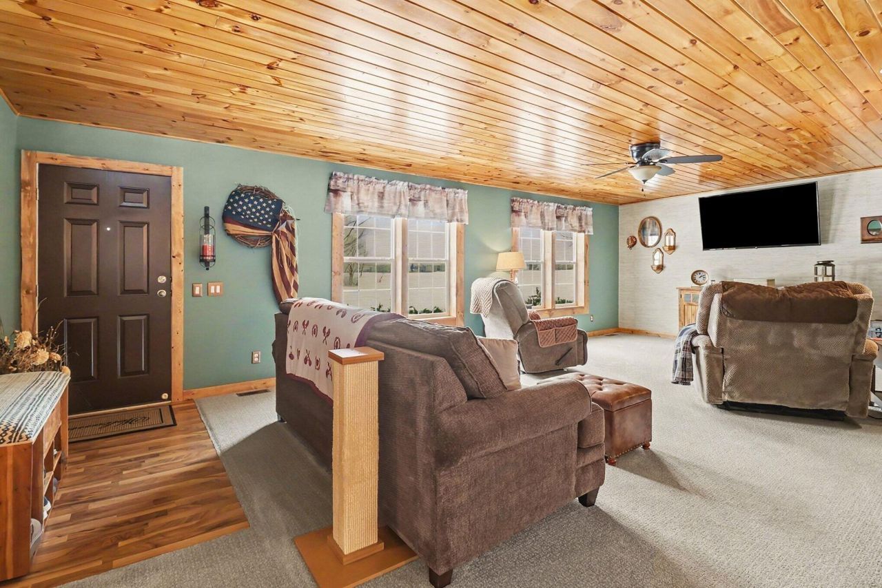 Welcome to this well-maintained 2-bedroom, 2-full-bath home set on a beautiful 5-acre parcel offering the perfect blend of convenience and privacy. Located just off the main road, this property provides easy access while still feeling tucked away. Enjoy numerous updates throughout the home, a covered front entry, and an attached 2-car garage. The extra-deep crawl space offers an abundance of storage. Step out back to the spacious 20x20 screened-in patio overlooking the peaceful setting, where Stony Creek gently runs through the rear of the property. A storage barn with electric and water adds incredible versatility for hobbies, storage, or future projects. Along with guest quarters for those that come to visit. All this, just a short drive from Lake Michigan beaches, a truly special opportunity.