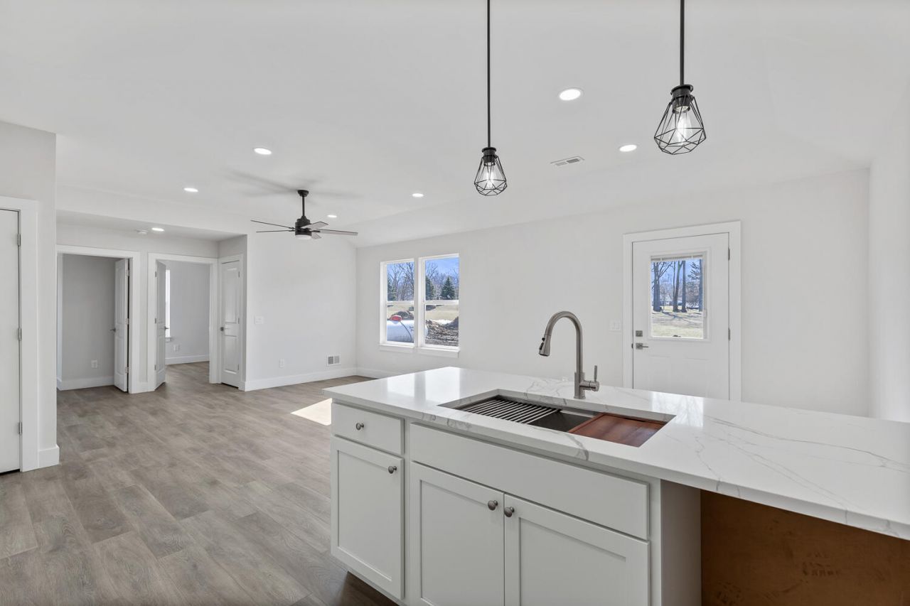 Brand new home past drywall and now nearing completion! March/April move in available! Get the first look at this brand new subdivision in Adrian. Photos are of similar home. This 1,268 sqft home on just under half an acre features a spacious layout with upgrades throughout. Enjoy a large kitchen with a single-bowl stainless steel sink, soft-close cabinets, and the option to choose your own quartz countertop colors, flooring, and paint selections of your own! Features include an optional patio, optional stone siding, brushed nickel hardware, LED lighting, and Jeld-Wen energy-efficient windows. The master suite offers a walk-in closet, 8 ceilings, and a large master bath. Includes a full concrete driveway to road! Act fast to customize this beautiful home and get the first peek at this brand new subdivision, make it yours today!