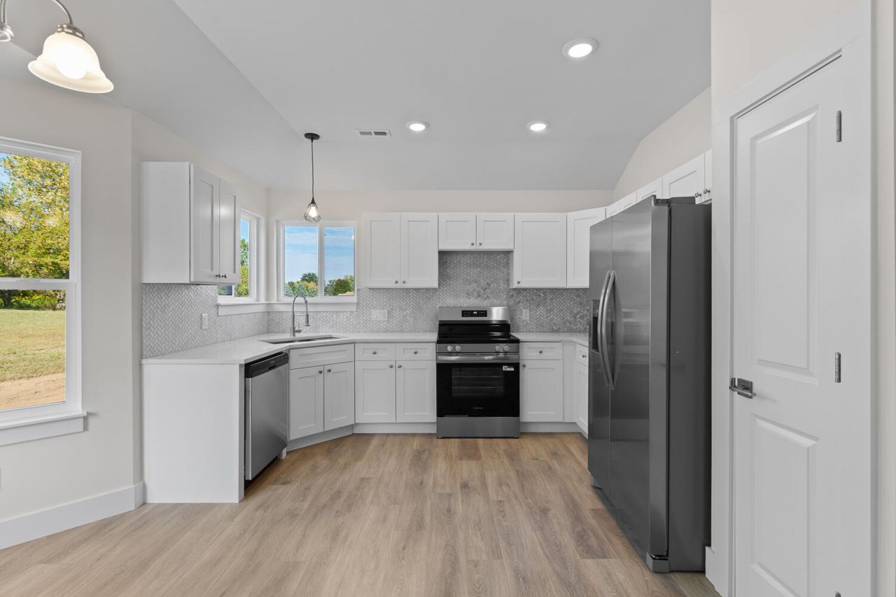 This home is in the final stage, move in as soon as March!!! This 1,360 sqft floor plan sits on just under half an acre. It features a spacious layout, single-story ranch floor plan, included basement, and quality of life upgrades throughout. Enjoy a large kitchen with a single-bowl stainless steel sink, soft-close cabinets, and the option to choose your own quartz countertop colors, flooring, and paint selections of your own! Features include an optional patio, Jeld-Wen stone siding, brushed nickel hardware, LED lighting, and Jeld-Wen energy-efficient windows. The master suite offers a walk-in closet, 8 ceilings, and a large master bath. Includes a full concrete driveway connected to the road. Act now before construction completes! There is still time to choose all exterior and interior finishes!Photos show a recently built, similar home.