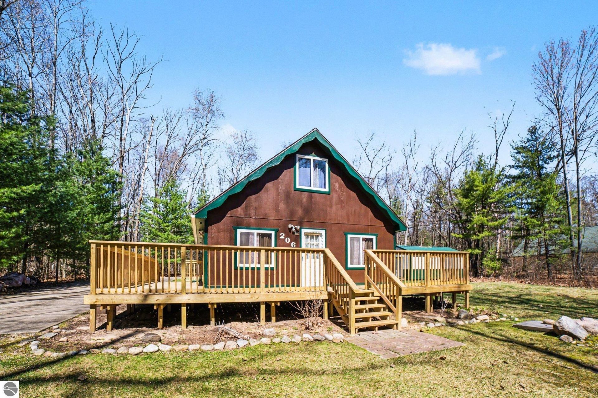 Escape to tranquility at Houghton Lake, where rustic charm meets recreational bliss. This quaint A-frame chalet is nestled amidst serene, tall trees, offering a perfect escape for those seeking adventure or relaxation. With 3 cozy bedrooms and 1 rustic-style bathroom, this home promises comfort and warmth. The inviting wooden deck is your front-row seat to nature's grandeur, while inside, wood-paneled walls and floors seamlessly blend traditional charm with modern convenience. The kitchen boasts wooden cabinets paired harmoniously with sleek black appliances. Unwind by the cozy wood-burning stove as sunlight streams through large windows, illuminating every corner with natural light. Outdoor enthusiasts will love the proximity to state ORV trails, and ample storage along with RV parking featuring an electrical hookup make for hassle-free adventures. This property is your gateway to endless outdoor fun. Don't miss this rare opportunity!