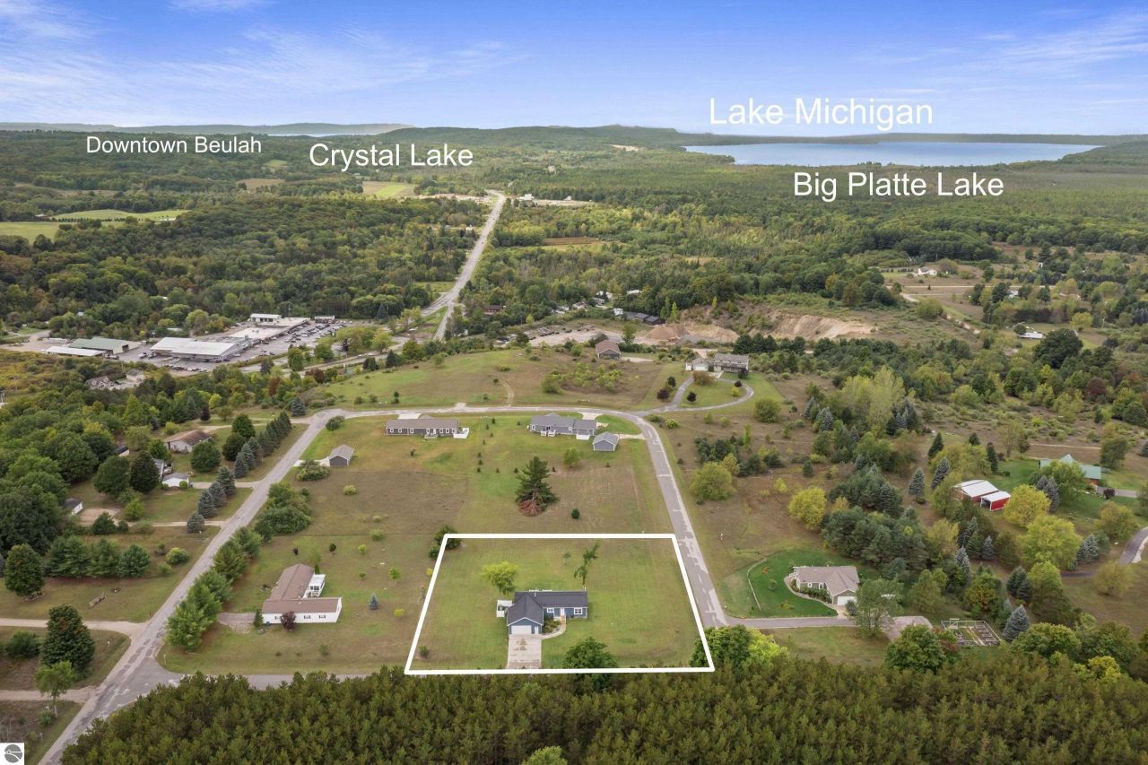 Nestled in the picturesque neighborhood of Scenic Circle, you will enjoy beautiful sunsets over the Big and Little Platte Lakes from your deck. This ranch style home built in 2020 offers easy and worry free living. 3 bedrooms, 2 bath and a open concept with a 2 car attached garage. Quite, serene neighborhood, this property offers the best of both worlds-privacy and proximity to essentials. The extra cost is already done, irrigation and air conditioning for warm summer nights. 20 minutes from Traverse City with a easy commute if your employed there. Extra acre lot available that adjoins if buyer is interested.