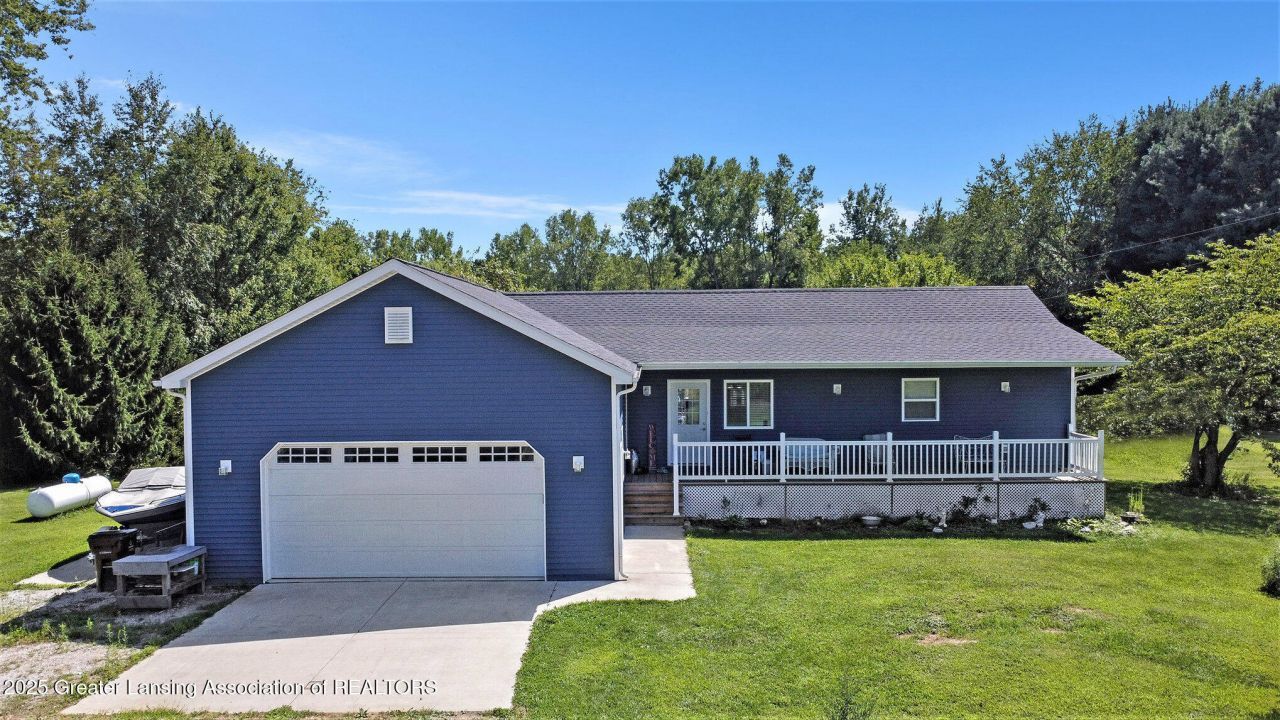 Welcome to 2600 Heeney Road, a 2 bedroom, 2 bathroom ranch built less than 3 years ago, offering modern comfort and timeless charm in a scenic country setting. Located less than 5 miles from downtown Stockbridge and within 20 minutes of US-127 and I-96, this home balances the convenience of an easy commute with the tranquility of wide-open views. Step inside and enjoy the stylish finishes throughout, where vaulted ceilings soar over the living room and kitchen/dining space, creating an airy, light-filled atmosphere. The eat-in kitchen is as functional as it is stylish, featuring stainless steel appliances, oak cabinetry, and a spacious island for gathering. The bedrooms offer generous closet space and neutral tones. Main-floor laundry, energy-efficient spray foam insulation, and a recently serviced water softener provide everyday ease and peace of mind. The partially finished basement expands your living space, with a drywalled and insulated section complete with egress windowsoffering the potential for a 3rd bedroom. Outdoors, this property shines with its large back deck overlooking sweeping views, a welcoming covered front porch ideal for morning coffee, and a generous yard with mature trees, a firepit, and a storage shed. The 2-car attached garage is built with 11 ft. sidewalls and electrical wiring for both 110v and 220vperfect for the hobbyist or mechanical enthusiast. This move-in ready home combines comfort, efficiency, and rural tranquility. Call us today to schedule your private tour!