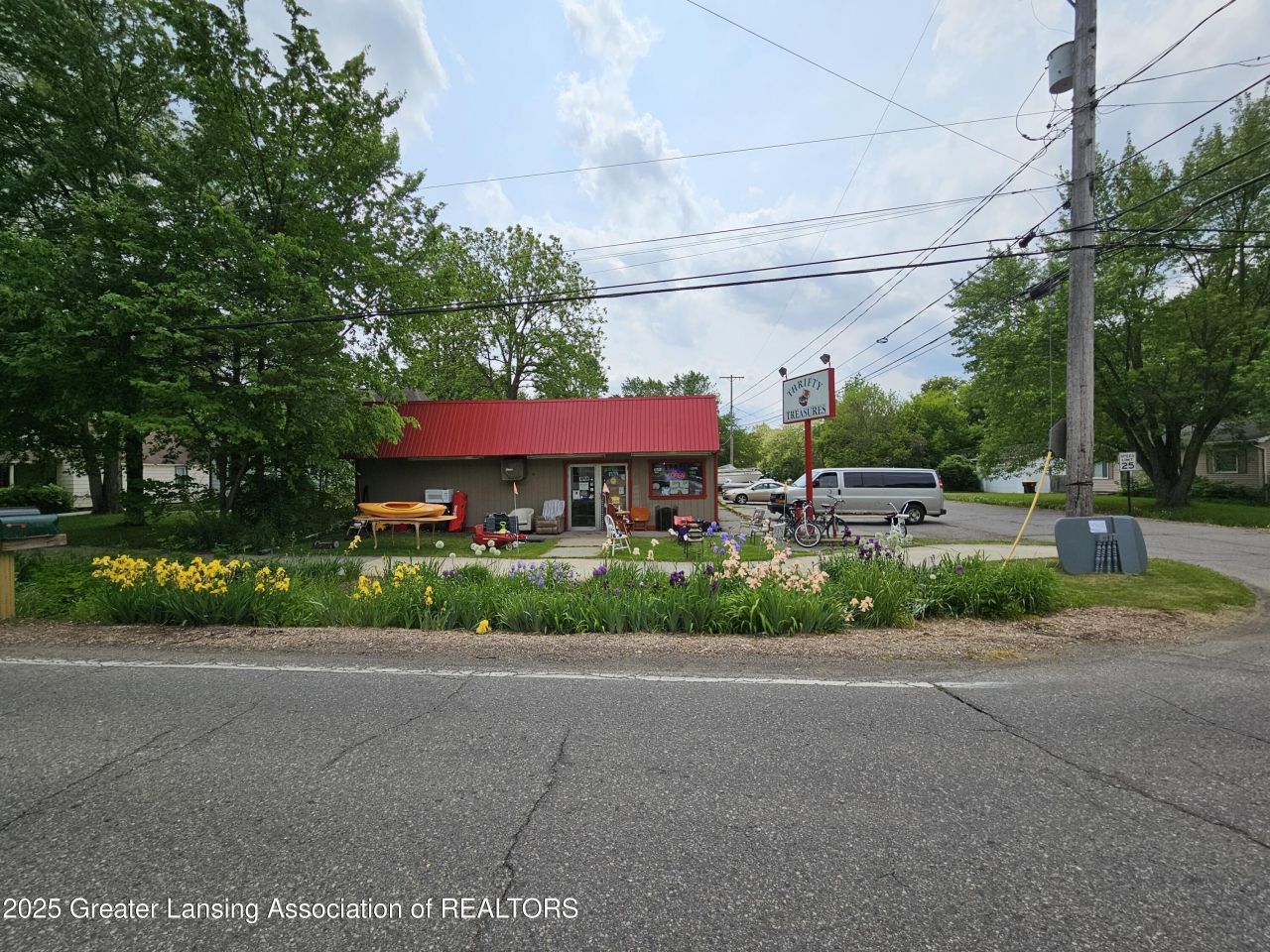 Commercial retail building with opportunity for residential remodel. Former Thrifty Treasures 2nd hand store, has the ability to change to any use with Meridian Twp. Conditional zoning will revert back to residential if no commercial use after closing. Large lot size with plenty of room for setback if you want to build on the property. Store inventory is available for sale.