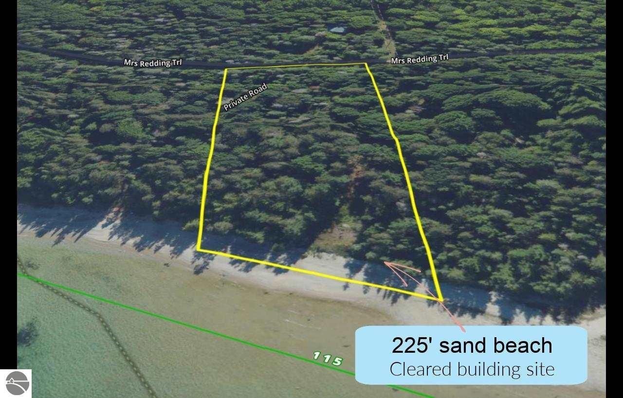 Stunning Lake Michigan frontage. With 225' of private mixed sand and rock beach, this 2.5 acre property is a dream site for your island home. Located on Mrs. Reddings Trail, there is seclusion and privacy with just a 15 minute drive into town. Towering hardwood and pine mix with sunset views. A driveway and building site have already been cleared and this gem is ready for your next build!