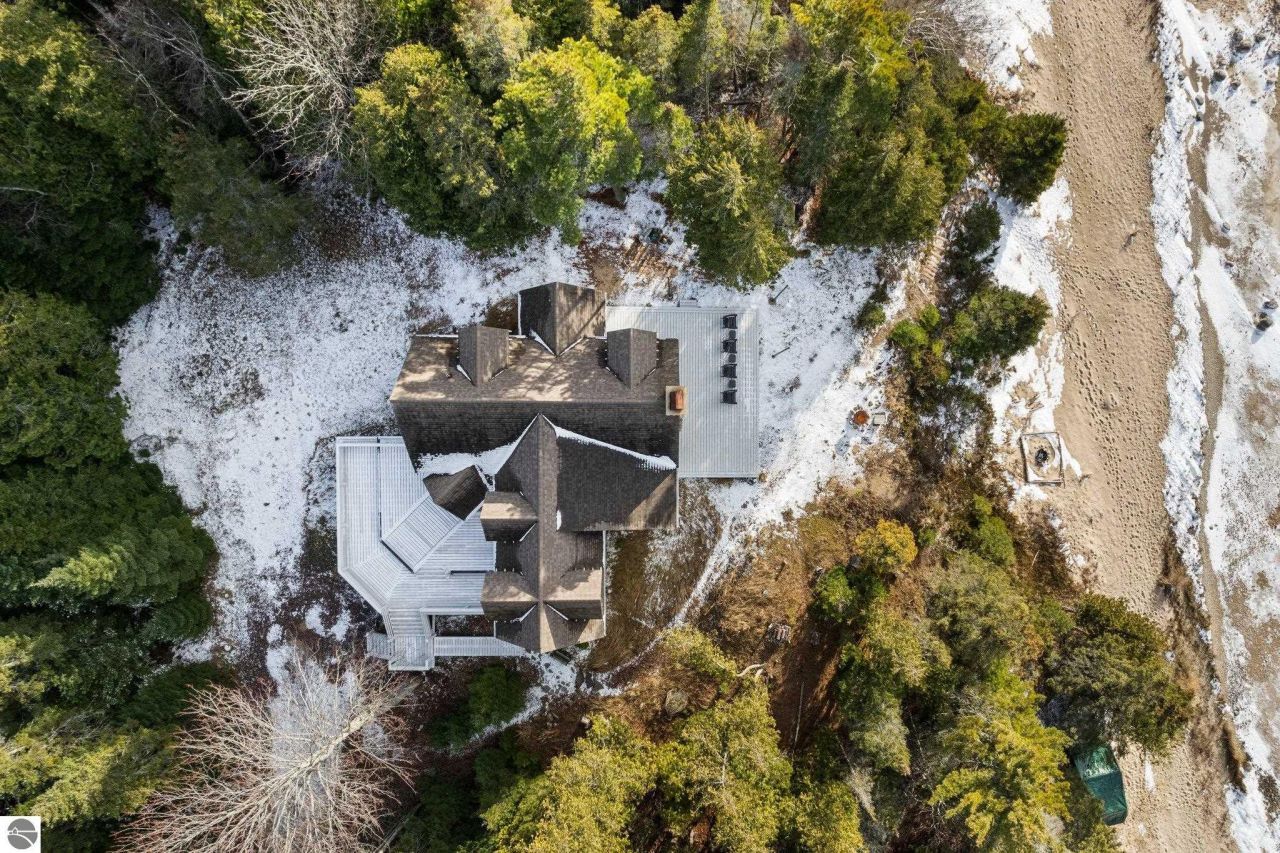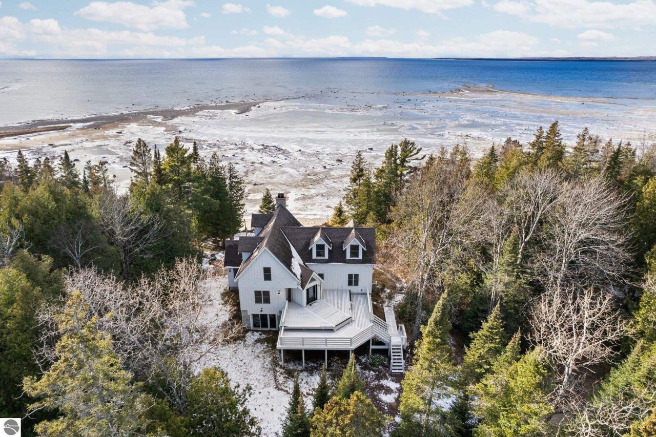 Offering a pristine home on 405 feet of sandy Lake Michigan shoreline, nestled within 5.5 acres of wooded land. Recently remodeled, this 'white on white' residence features solid oak floors, quartz countertops, and custom woodwork throughout. Expansive decks on both sides of the home provide seamless indoor-outdoor living and stunning sunset views. With 4 bedrooms + an additional room that could be used as an office or bedroom as well as 3.5 bathrooms, this dream home is sure to satisfy. Located on Western Shores Lot 16, the property also includes the adjoining Lot 15 for added privacy or room to build a guest house!