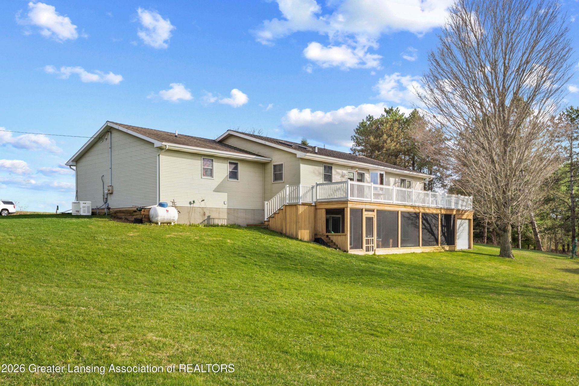 This stunning hilltop ranch in the desirable Olivet School District combines the peace of country living with high-end modern updates and total peace of mind. Standing out with a whole-house Generac generator and a high-efficiency furnace, this home is designed for both comfort and reliability. Boasting over 2,600 square feet of finished living space, the floor plan is a masterclass in layout, offering expansive views of the surrounding countryside from nearly every room. The main floor welcomes you with warm oak hardwoods and an open staircase that creates an immediate sense of scale. At the heart of the home, the bright kitchen features quartz countertops, premium cabinetry, a large central island, and multiple skylights that flood the space with natural light. The massive primary suite serves as a private sanctuary, featuring an organized walk-in closet and a luxury ensuite bath with double sinks, quartz counters, and shower. From the bedroom, private French doors lead directly to the sprawling rear deck?the perfect spot to take in panoramic Northwest sunsets over the neighboring fields and pond. The walk-out lower level is entirely above grade on the view side, making it feel like a second main living floor. It includes two oversized bedrooms, a full bathroom, and a versatile layout featuring both a family room and a dedicated recreation area. You will especially appreciate the walk-out access to the screened-in porch, providing a perfect bug-free environment for summer evenings. From the inviting front porch to the massive deck spanning the length of the home, this property offers an unmatched hilltop perspective. Schedule your private showing today to see why this is the best value for a move-in-ready retreat on the market!