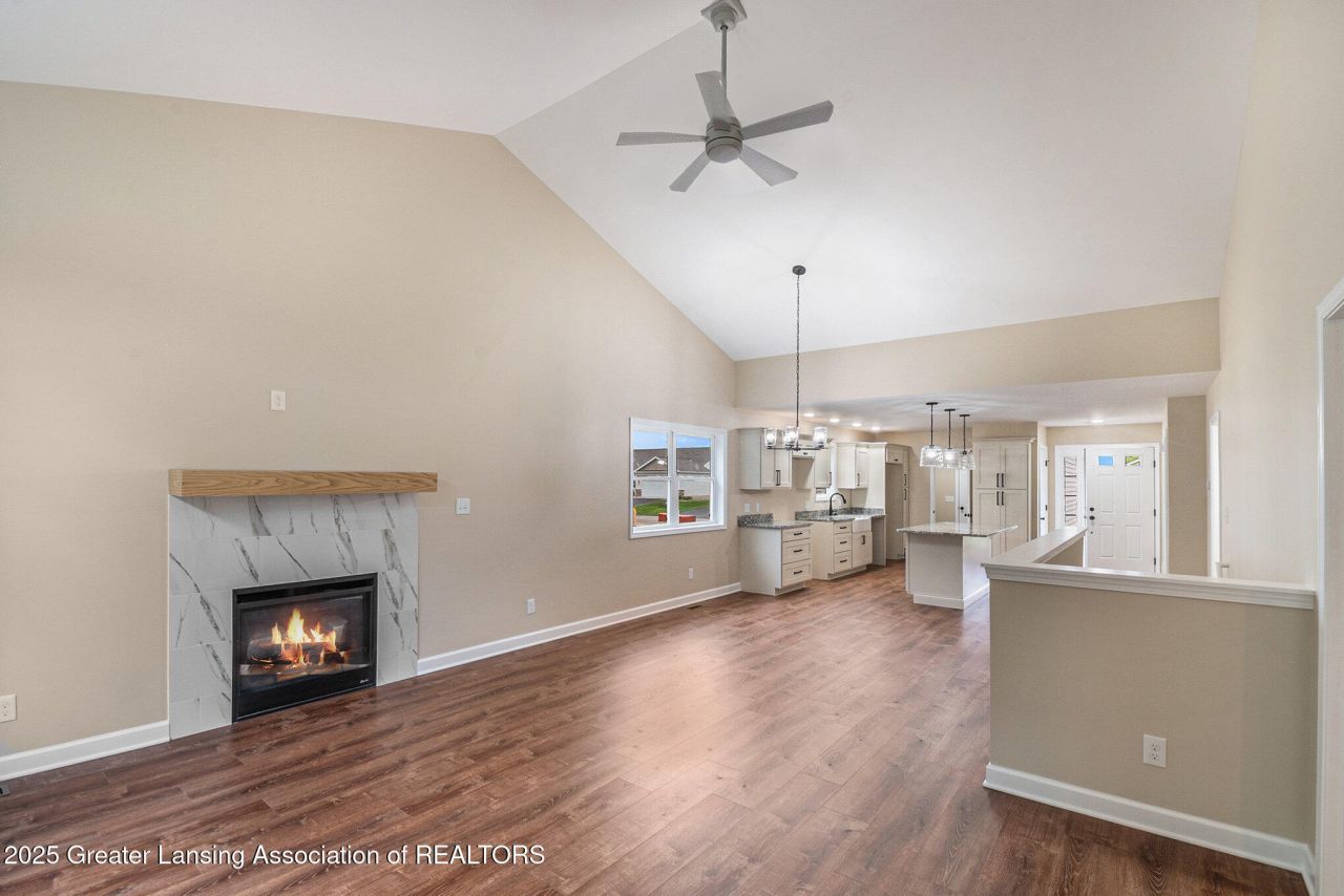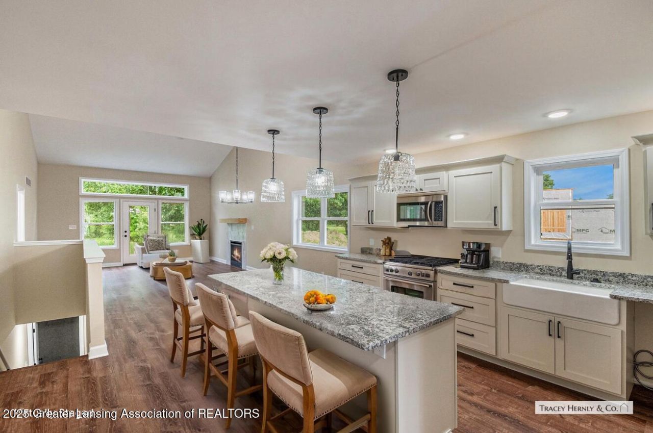 *Proposed builds, photos are from other completions* Welcome to 4057 Eastbridge Circle, your dream home awaits in this charming Stockbridge neighborhood! This BRAND NEW 2 bedroom, 2 bath home is ready for its new owners. This thoughtfully designed home offers modern, open-concept living with beautiful finishes throughout. The spacious kitchen features granite countertops, a farmhouse sink, a large center island, soft-close cabinetry, and stylish pendant lighting. Blending seamlessly into the dining and living room - boasting vaulted ceilings and large windows allowing natural light to pour in, highlighting the luxury vinyl plank flooring and cozy gas fireplace. Convenience is key with a first-floor laundry room and an on demand hot water heater, simplifying daily chores. The primary suite is a true retreat, complete with a full bath and walk-in closet, providing plenty of built-in storage space for your wardrobe. An additional bedroom and full bath finish off the main level. The full basement is already stubbed in for an additional bathroom and offers an egress window, providing the opportunity to customize and finish this space to suit your needs. Whether you envision a home gym, a playroom, or another bedroom, the possibilities are endless. The insulated & drywalled, attached 2-car garage provides added convenience for storage. Nature enthusiasts will appreciate the easy access to the beautiful Lakeland Trails, just a short walk away, while downtown Stockbridge, with its charming shops, dining, and community events, is also within walking distance. For commuters, this home offers the best of both worlds: a peaceful suburban retreat with a short commute to Lansing and Jackson. Schedule your showing today to experience all that Eastbridge condos have to offer!