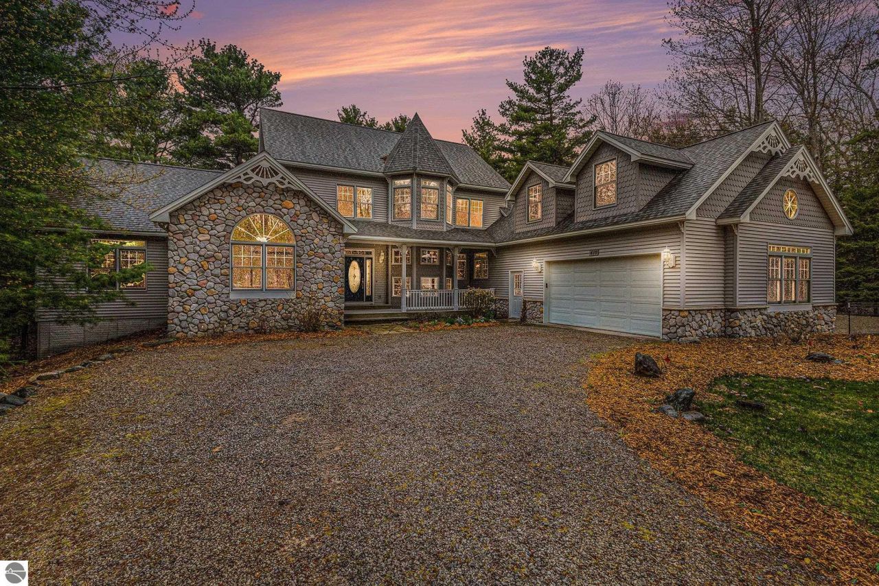 Discover your own piece of paradise with this stunning East Bay waterfront property, where every day feels like a vacation. Enjoy direct access to one of the world???s most beautiful freshwater lakes and immerse yourself in the ultimate lakefront lifestyle. Step outside to your 200' of private sandy beach on East Bay and savor the soothing sounds of waves and breathtaking sunsets. Whether you seek relaxation or adventure, this home offers it all: kayak along the shoreline in the morning, spend afternoons boating or paddle boarding from your dock, and gather around a lakeside fire pit in the evening. Experience true Northern living in this stunning Custom Woodcraft home nestled on 3 acres located just minutes from Elk Rapids and Charlevoix. Designed for maximum enjoyment, this spacious retreat features expansive windows and spacious decking. Home features over 4500 sp. ft. of living space, 5 bedrooms and 5.5 bathrooms, thoughtfully designed for comfort and entertaining. The open floor plan showcases quality craftsmanship with natural wood finishes, expansive windows framing water views, and generous living spaces ideal for gatherings or peaceful relaxation. In addition to the main residence, the property includes a charming original Bellaire log cabin, perfect for guests or a cozy getaway, and a large pole barn providing ample space for storage, hobbies, or equipment. Experience the magic of Lake Michigan-embrace serenity, adventure, and the timeless appeal of living by the water???s edge. Your ultimate waterfront lifestyle awaits. Be sure to open and view the virtual tours. See Special Features Sheet, floor plans and survey in documents.