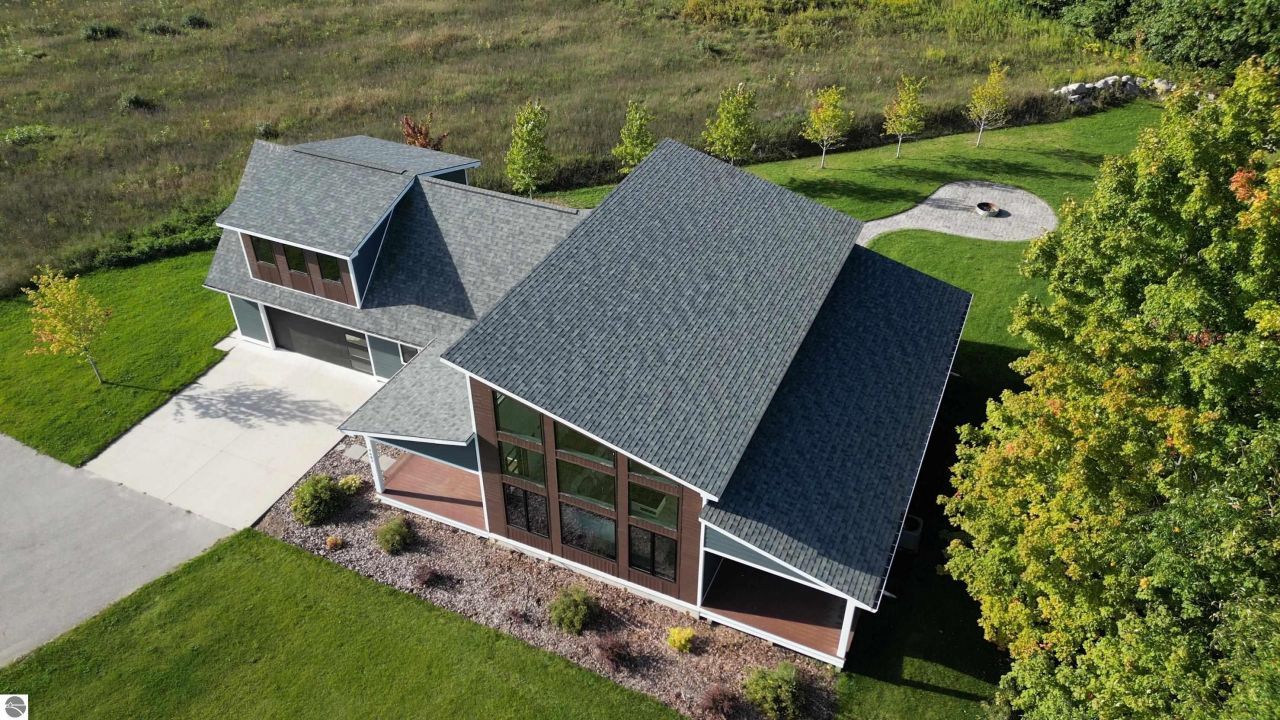 Surrounded by the natural beauty of Leelanau County, this contemporary Bay Hill home is designed for those who appreciate both style and serenity. Every detail???inside and out???reflects thoughtful craftsmanship and a connection to the landscape that defines Northern Michigan living. Step through the front door and feel the light. Soaring ceilings and a wall of windows frame views of the trees and sky, filling the open living space with warmth and energy. Whether it???s a holiday gathering, a cozy movie night, or a quiet morning with coffee, this home offers the perfect setting for every season of life. The kitchen was designed with both elegance and function in mind, featuring floor-to-ceiling cabinetry, a large island, and double dishwashers???making it as practical as it is beautiful. The main floor includes well-placed bedrooms and baths, while upstairs, a loft and flexible bonus room open to wide views of the Leelanau countryside, ideal for an office, guest suite, or creative retreat. Downstairs, the finished lower level expands the home???s versatility. Part of the space is currently set up for a golf simulator???perfect for the enthusiast???but could easily become a home theater, workout room, or additional living area. Outside, the backyard feels like a private haven, bordered by common area for added privacy. A stamped concrete patio, built-in fire pit, and cedar playset make it a space for gathering, relaxing, and enjoying starlit nights under the Northern sky. Located between Lake Leelanau and Leland, and just minutes from Suttons Bay, you???re perfectly positioned to enjoy all that makes this region so beloved???Good Harbor Beach, local wineries, golf courses, and charming small-town shops and eateries. With generous living areas, bright open spaces, and a setting that reflects the heart of Leelanau, this home is ready to welcome you Up North.