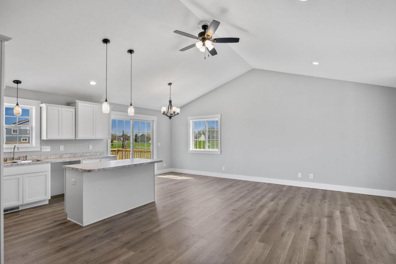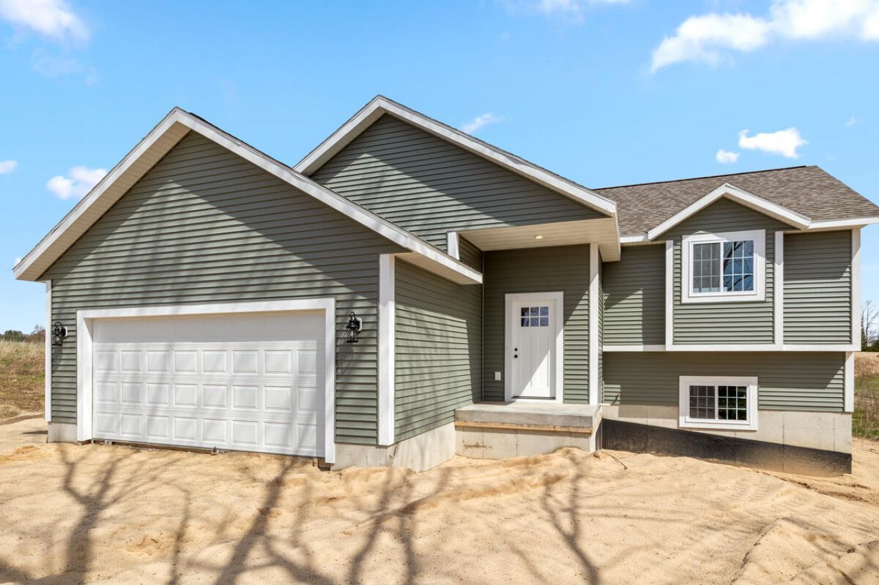 Fremont Meadows new construction. This home features 2 bed 2 full bath bi-level with open floor plan, vaulted ceilings in living room and kitchen, kitchen are with center island, eating area with slider to deck. Home also includes master suite with bathroom and walk-in closet. Full lower level basement for future expansion with lots of daylight windows. 2 stall attached garage all on an 1 acre lot.