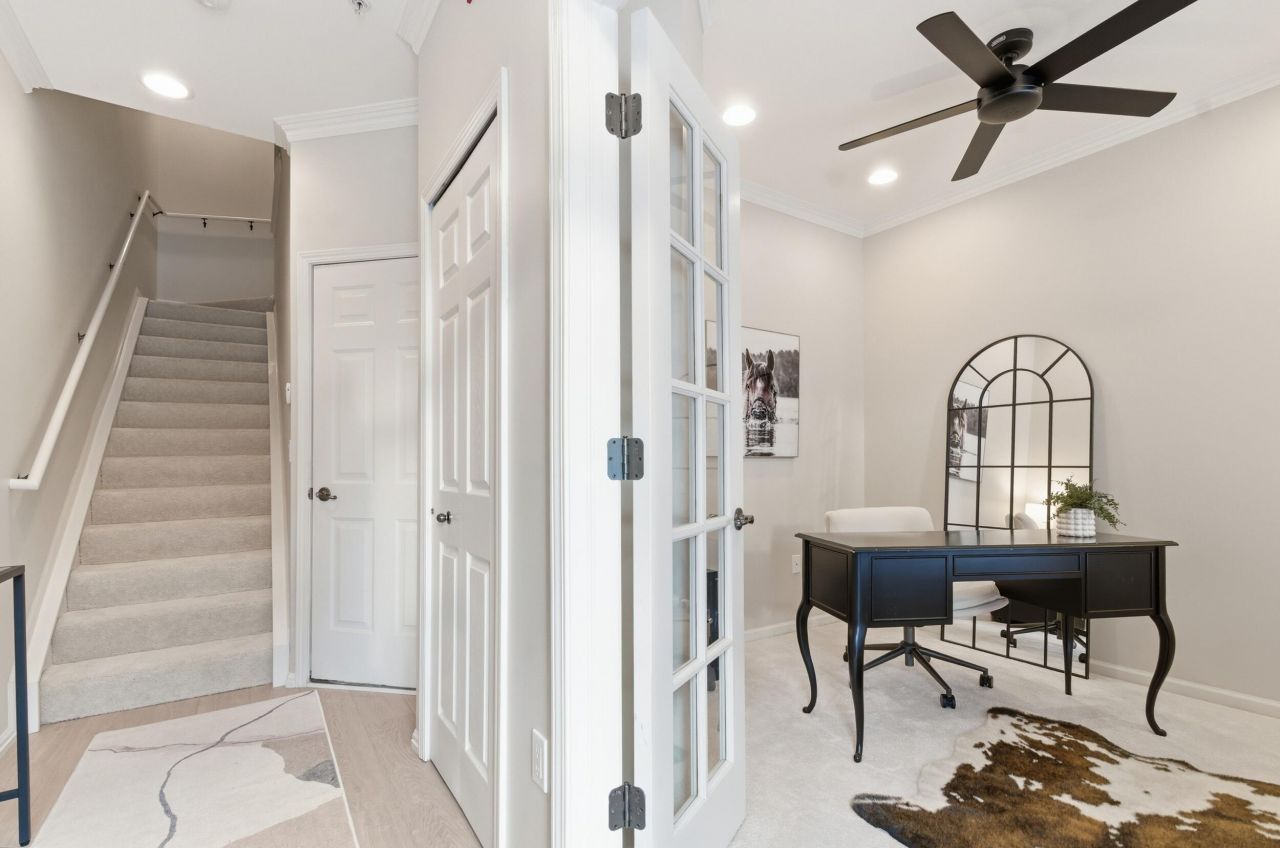 Welcome to one of Eton Street Stations premier Brownstone-style townhomes, newly remodeled and offered fully furnished for turnkey living. This stunning residence features fresh paint, new flooring throughout, and beautifully updated bathrooms blending modern upgrades with timeless style.The main living level offers 9-foot ceilings, crown molding, and a bright open-concept layout with Luxury Oak Vinyl flooring. The off-white kitchen showcases LG appliances (refrigerator, dishwasher, microwave), granite countertops, a butlers pantry/bar, and a breakfast bar for two. A spacious eat-in area with a glass table for six opens to a private deck.A first-floor office with French doors is ideal for working from home. The primary suite includes a custom walk-in closet and spa-like bath with a walk-in shower and Euro-style glass door. The top-floor loft features a full wet bar, beverage fridge, kegerator, seating, and TV?perfect for entertaining.