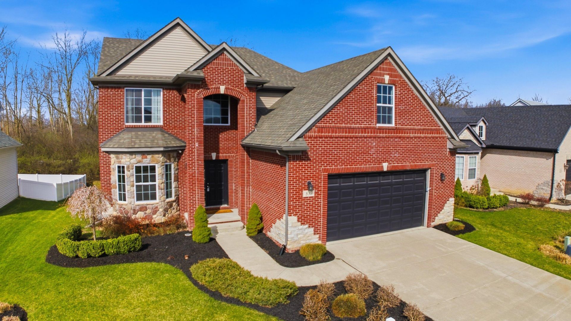 Skip the wait for new construction and move right into this nearly new contemporary colonial in desirable Dundee Ridge. A stately brick facade welcomes you into a dramatic two-story foyer, flanked by a formal dining room with elegant wainscoting and a sunny bay window - perfect for morning light and special gatherings. Straight ahead, the spacious great room invites you to relax or entertain in style. The open kitchen is both sleek and functional, featuring floor-to-ceiling gray cabinetry, quartz countertops, a classic subway tile backsplash, and stainless-steel appliances. A large center island offers additional prep space and breakfast bar seating for casual meals, while the adjoining breakfast nook overlooks the living room and provides sliding-door access to a future deck - bring your ideas and create the outdoor space of your dreams. The generous living room is ideal for cozy evenings by the gas fireplace or hosting friends on game day. A convenient laundry room and powder room complete the main level. Upstairs, youll find two bedrooms sharing a hallway full bath plus an impressive primary suite retreat. The vaulted primary bedroom is complemented by a private en suite bath with dual vanity, soaking tub, and separate shower, along with a huge walk-in closet. A unique walk-through dressing or sitting room leads to a finished bonus room above the garage - perfect for a nursery, home office, studio, or flex space tailored to your needs. The full basement features two large daylight windows and is ready for your finishing touches, offering endless possibilities for a home theater, playroom, or craft space. The sizable backyard enjoys a large patio and overlooks a tree line for privacy and idyllic views. Residents of Dundee Ridge enjoy access to a community park with a playground, tennis and basketball courts, and open greenspace. Conveniently located just outside downtown Dundee with easy access to US-23, this home offers the perfect blend of comfort, style, and commuter convenience.