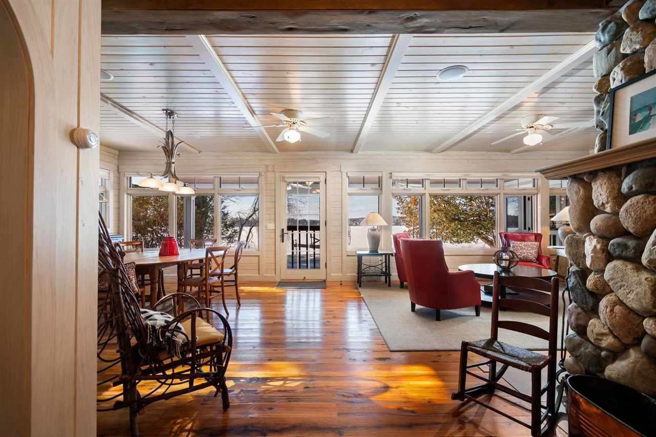 Set along one of Walloon Lake's most desirable corridors on Lake Grove Road, this charming home offers 100 feet of flat, level shoreline and an A+ location central to everything that makes this region so special. The main residence features four bedrooms and 2.5 baths, along with an office and separate study that provide flexibility and quiet retreat space. A fieldstone wood-burning fireplace anchors the living area, welcoming you home against a stunning backdrop of azure blue views across Walloon. The kitchen, complemented by an adjoining wet bar, will surely appease the chef of the household, while the open layout allows anyone preparing a meal to remain part of the gathering. The primary bedroom offers breathtaking lake views, a walk-in closet, soaking tub, and a spacious walk-in shower. Three additional bedrooms upstairs provide ample room for a large group, while the third-story bonus area offers ideal space for lively guests or additional overflow. Just steps outside, a fantastic outdoor kitchen complete with a stone pizza oven and a spacious covered lakeside porch brings celebrations outdoors with ease. Complementing the main home is a three-car detached garage with a finished guest residence above, offering two bedrooms, a full bath, kitchenette, and living area. This separate space allows visiting guests to enjoy privacy while remaining fully connected, an ideal arrangement for multi-generational use. The level lot creates easy access to the shoreline, making swimming, boating, and long summer days on the water more fun and enjoyable. The proportions are generous yet balanced, substantial enough to host and gather, yet appropriate in scale for easy maintenance and year-round enjoyment. This is a classic Walloon Lake offering in a premier location, close to Petoskey, Boyne City, Charlevoix, Harbor Springs, and Bay Harbor. This flat lake level setting, mere steps from the waters edge is sure to provide lasting value and enjoyment for years to come.