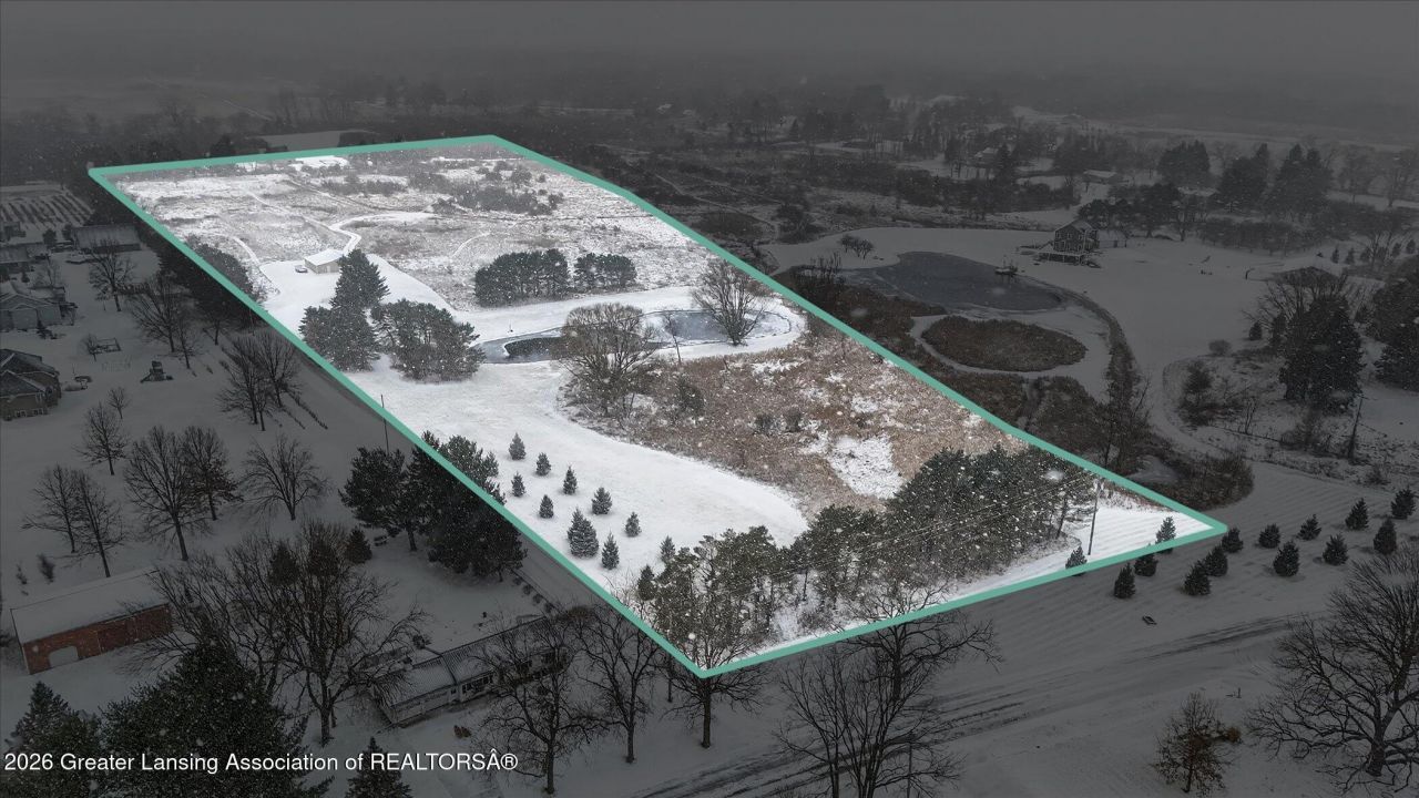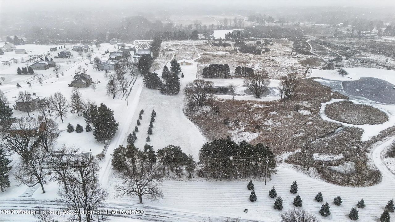 Build-able homesite with Haslett Public Schools! This 20 Acre parcel offers you a private gravel driveway, pond and views of a secondary pond. This parcel allows for a single-family home to be built on-site. Previous home was torn down in 2018, the pole-barn remains. The polebarn dimensions are 498X398X107. Both garage doors on opposite sides of the polebarn are 95 in height by 94 in width with key pad and service door. The well head & electric meter is on site with natural gas available near driveway entry. Well condition & septic condition unknown since teardown of home in 2018 , check county records for further information.
