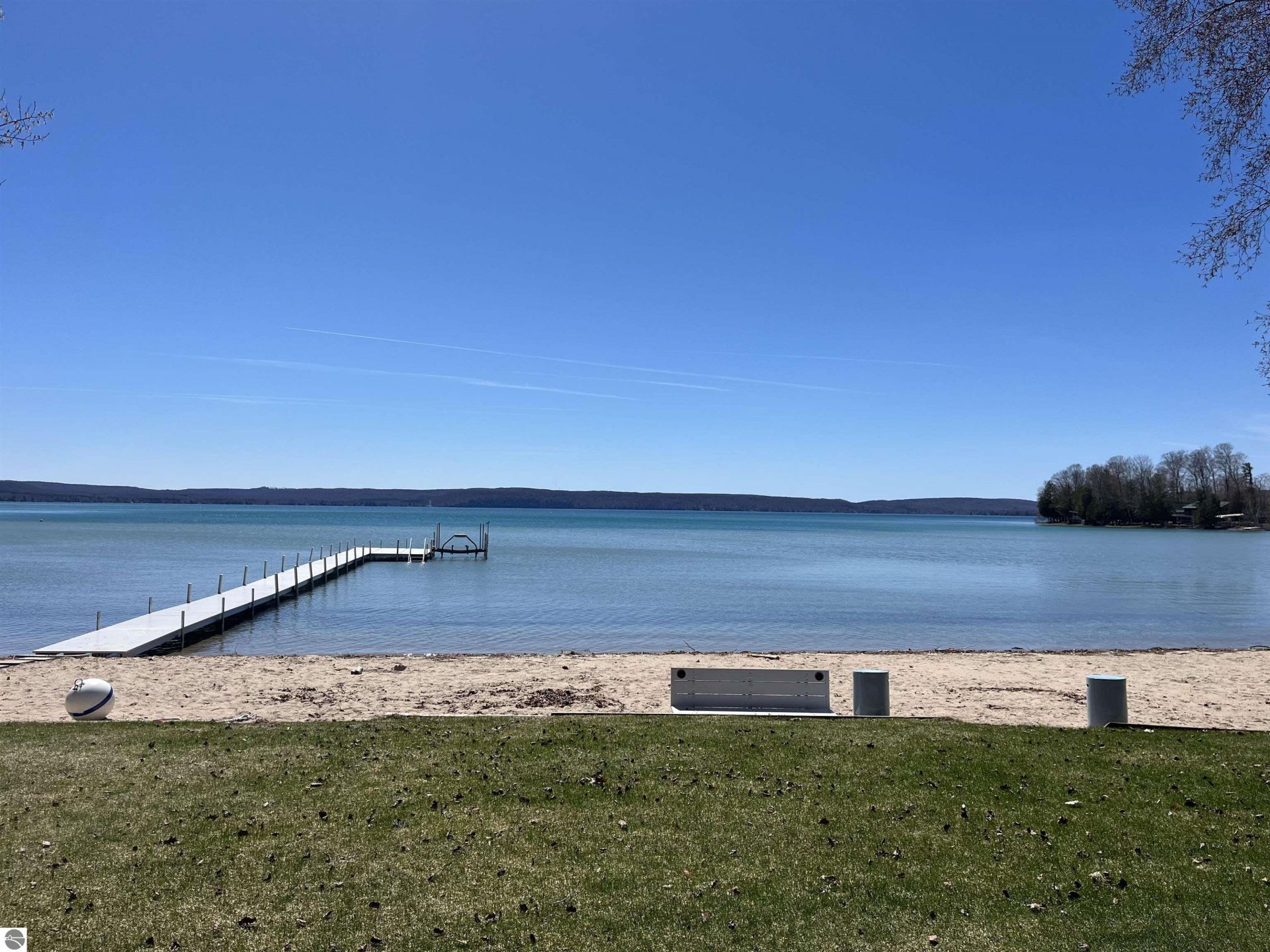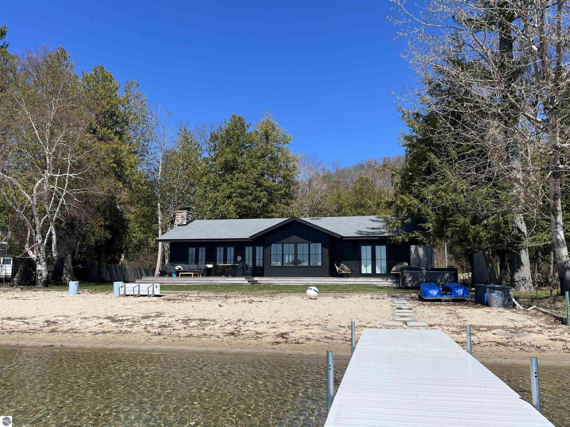Freshly remodeled home with 100 feet of sandy beach frontage on Big Glen. 3-bedroom, ( plus a full office), 2.5-bath home. Comprehensive remodel completed in 2024 with top-of-the-line finishes throughout. Enjoy your own private sandy beach, dock, lakeside patio and hot tub. Everything needed to experience Big Glen. Option to be purchased fully furnished. Move-in ready. Minutes from Glen Arbor, Sleeping Bear Dunes, great dining, and wine trails. Northern Michigan at its finest. The lot located on Big Glen is .6 acres, included with sale is 1.38 acres across the street.
