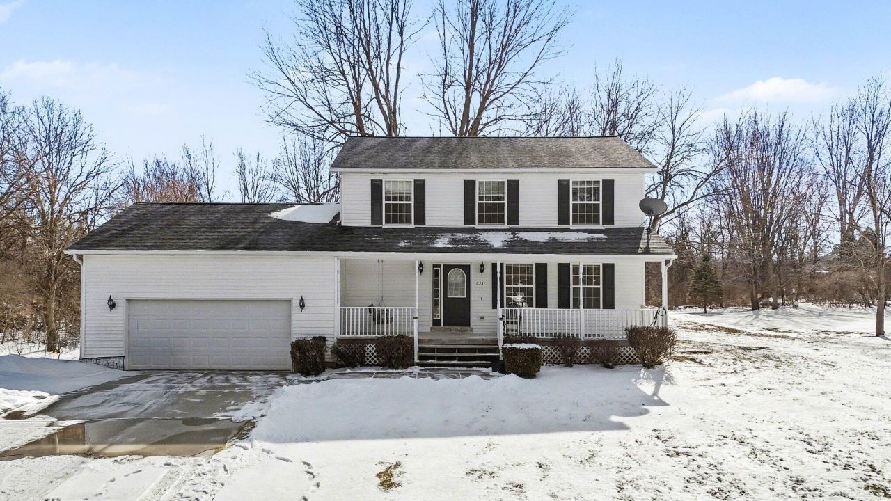 Welcome home to this 3 bedroom 2 1/2 bath Colonial nestled on a peaceful one-acre country setting, offering the perfect blend of space and convenience just minutes from town, schools, and the expressway. Open kitchen and dining area designed for gathering and everyday living. The comfortable living room provides a cozy place to unwind. Enjoy quiet mornings on the full covered front porch, overlooking the spacious yard. A full basement with daylight windows offers endless possibilities, and the 2-car attached garage completes this wonderful place to call home.