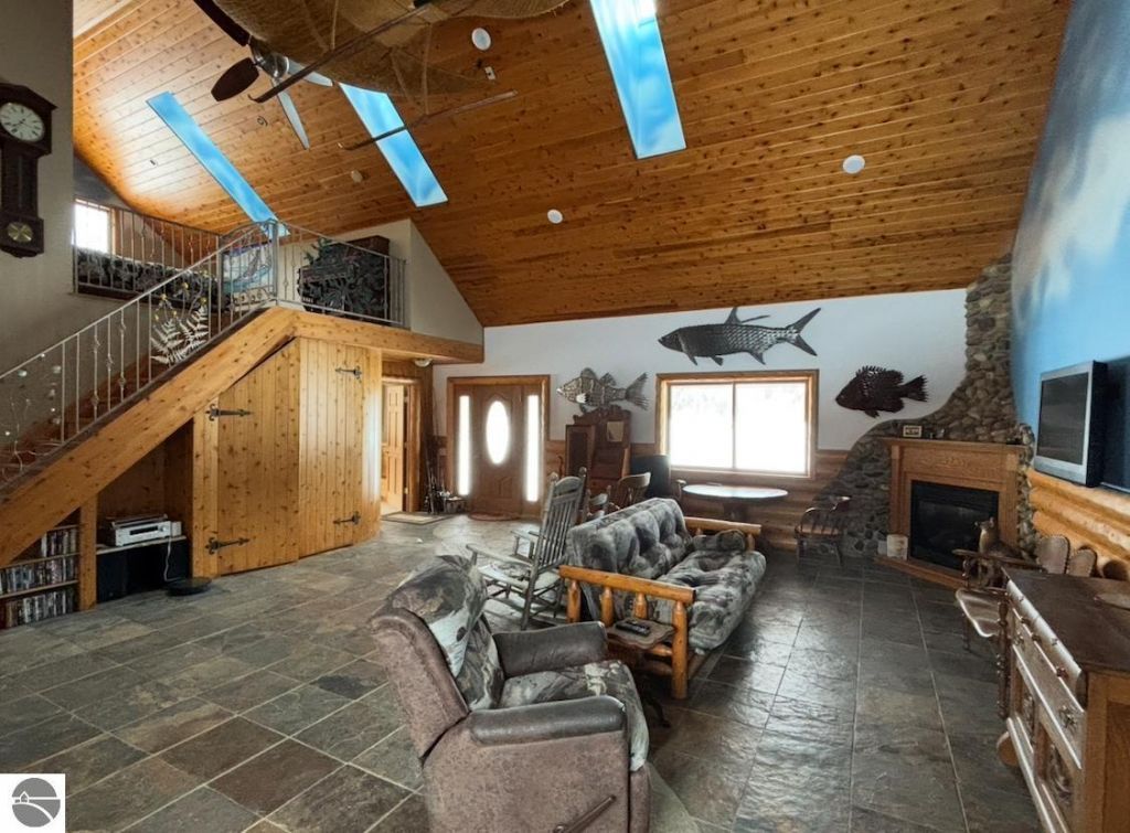 SERENE LAKESIDE LIVING on St Clair Lake on the renowned upper Chain-of-Lakes in Antrim County. Discover your piece of paradise on your 377 feet of frontage and a 4.21-acre private setting from this beautifully designed home. The spacious living room features plenty of natural light from the skylights, vaulted ceilings and fireplace. Additional amenities include 3 bedrooms, 3 ½ baths; unique custom features; 2-car attached garage and more. Imagine relaxing on the expansive covered porch, soaking in the tranquil sounds of nature and the stunning views of the lake. Whether you desire a quiet retreat or a lively gathering spot for friends and family, this home offers the perfect setting. Your guests will feel right at home with their own space in the cozy guest house. For those with a green thumb, the greenhouse room within the shop building provides an excellent opportunity to hone your gardening skills. Meanwhile, the boathouse offers convenient storage for your boat, making it easy to enjoy all that St Clair Lake has to offer. Whether you enjoy fishing, boating, sailing, paddleboarding, kayaking, or swimming, this is the perfect spot to enjoy year around recreational activities.