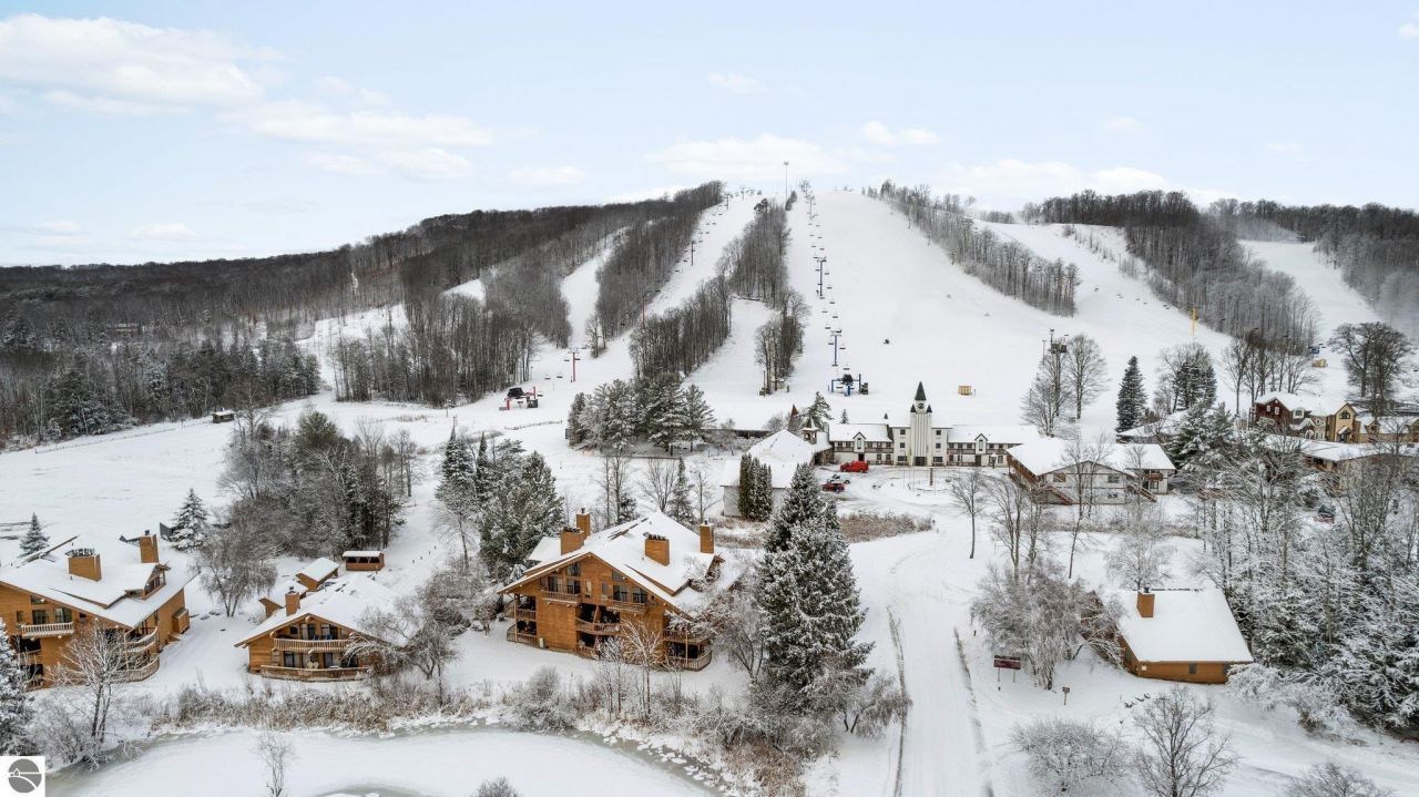 This stunning 2-bedroom, 2-bath penthouse Cortina condo at Schuss Village in Shanty Creek Resorts is the perfect Northern Michigan getaway. Offering 1,200 square feet of light-filled living space, this ski-in/ski-out retreat boasts sweeping views of the ski slopes, golf course, and cross-country ski trails. A private freight elevator makes arriving easy???ideal for groceries, luggage, and gear???so you can start relaxing the moment you arrive. Inside, the open floor plan features cathedral ceilings and a cozy wood-burning fireplace, creating a warm, lodge-style atmosphere. Step out onto the deck facing the ski slopes to take in the action, or unwind on the bedroom deck overlooking the pond, golf course, and scenic Nordic trails in the winter. A third covered deck could be turned into a 3-seasons room for extra space to relax. The current owners put $13k into covering the porch and putting up windows. It is a blank canvas to finish as you please. Whether you???re seeking adventure or a peaceful escape, this furnished penthouse condo delivers year-round enjoyment in a truly special setting. These rarely come on the market, so make plans to see it now!