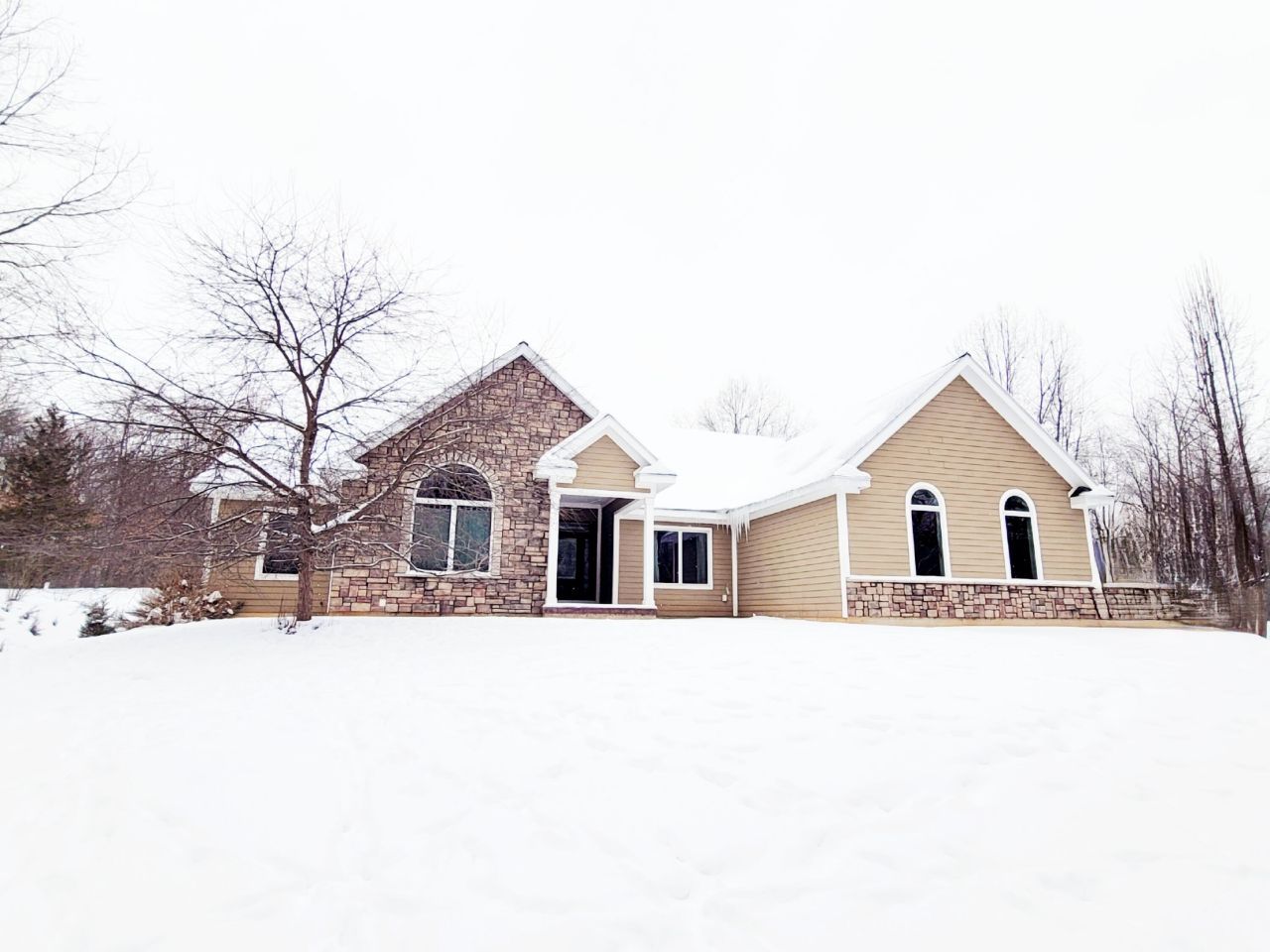 Executive Home on 4.53 Wooded AcresTucked away on 4.53 private, wooded acres this elegant 4-bedroom, 3 Full bath custom home blends refined craftsmanship with peaceful seclusion. A beautifully stamped concrete entryway welcomes you into a light-filled, open floor plan accented by solid hardwood floors and soaring 9-foot ceilings on both the main level and lower level.The gourmet kitchen is a chefs dream, featuring custom cherry cabinetry with full overlay, double-thick Quartz countertops, and a spacious layout perfect for entertaining. A formal dining room offers the ideal setting for gatherings, while the dedicated mudroom and laundry room off the garage provide everyday convenience.The main level includes a luxurious primary suite complete with a spa-inspired bath and a generous walk-in closet, as well as two additional bedrooms and a full bath.Downstairs, the partially finished walkout basement offers incredible potential already featuring spray foam insulation throughout, completed wiring and plumbing, and in-floor radiant heat plumbing awaiting a boiler. The basement also includes a finished 16 x 16 bedroom with egress, a full bath, and another bedroom ready for final finishes. The basements stamped concrete floors feature 2 inches of insulation underneath for year-round comfort.The attached two-car garage impresses with high ceilings, attic storage access, and plumbing for radiant floor heat.Enjoy serene woodland views and unmatched privacy from every angle of this remarkable property - a true retreat combining luxury, comfort, and craftsmanship in perfect harmony.