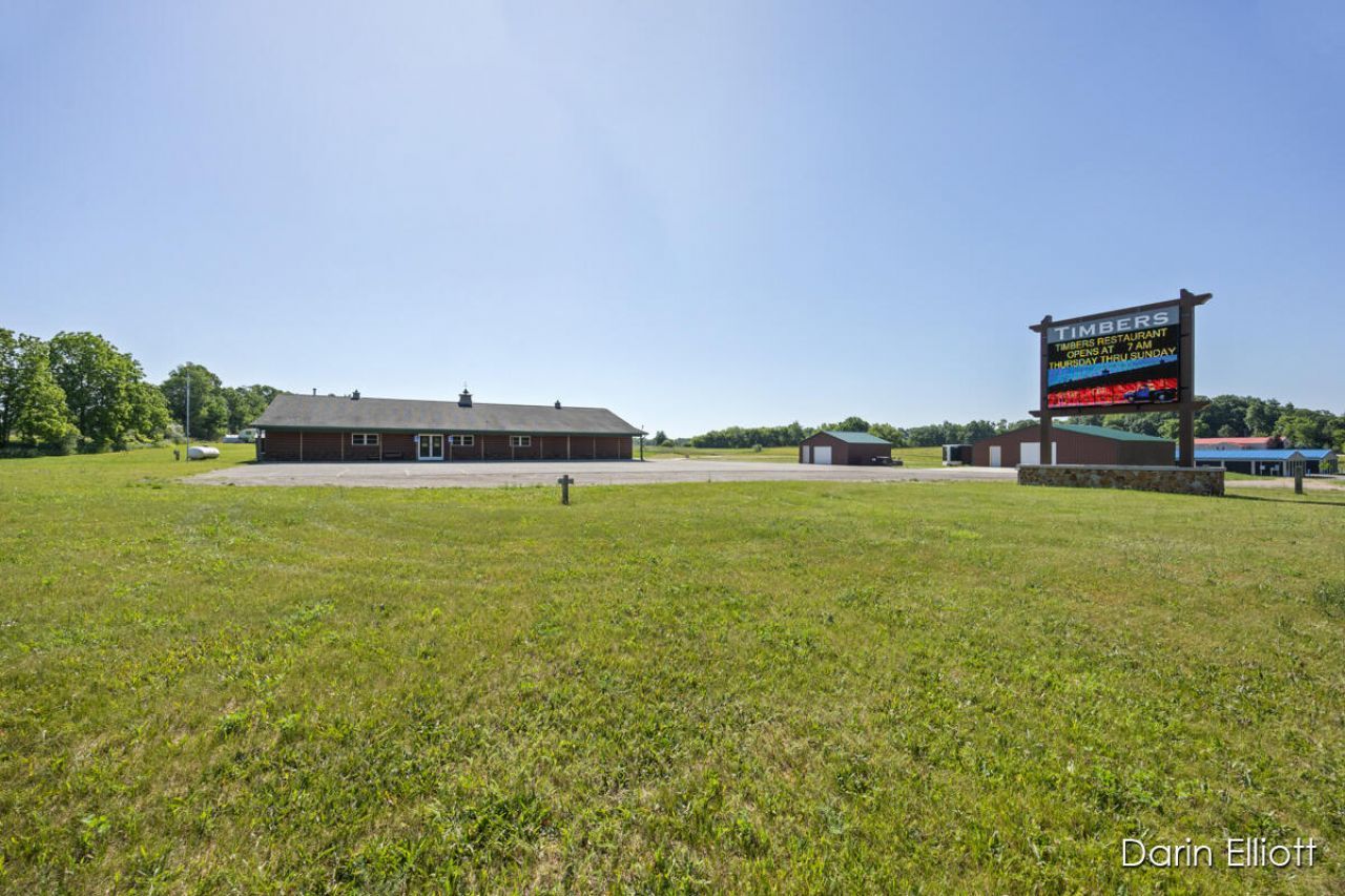 Welcome to Timbers Event Center & Restaurant! Current owners have poured their heart and soul into establishing Timbers as the Go To Restaurant and Venue in the area. Nearly 5,000 sq ft beautiful wide-open Banquet/Dining/Bar area that can host up to 200 quests. Building has been completely remodeled including floor/wall coverings, kitchen with all new equipment, gorgeous his/her and family bath, and new fixtures throughout. New HVAC for the North side, foam insulation, updated electrical and plumbing. Wood rock interior with Colorado TruLog metal siding over brick base. Exterior provides even more gathering space options with covered front patio, rear patio area, and owners just added a 40x40 stamped concrete pad with commercial Tent included. This is a True Turn-Key offering including real estate, business, all equipment and inventory. See attached Inventory list. Walk-in cooler has been completely rebuilt. The list of amenities is endless from HS Fiber internet, full water filtration/RO system, commercial Smoker, the brand new 6 Figure Electronic Sign, a 40x40 and 24x24 steel pole barns for plenty of storage, and the icing on the cake is a Full Class C Beer/Liquor license. 6 well and new oversized septic system. Unbeatable location set on nearly 4 Acre corner lot along the High Traffic M66 corridor. Just a few minutes to Greenville/Ionia and easy 40-50 minute shot to Gr or Lansing. Come visit us today! Timbers is continuing to expand their hours of operation and now open Wed 7:30AM-3PM, Thurs - Saturday 7:30AM-8PM, and Sundays 7:30-3PM. www.thetimbersllc.com, https://www.facebook.com/TimbersofSheridan/