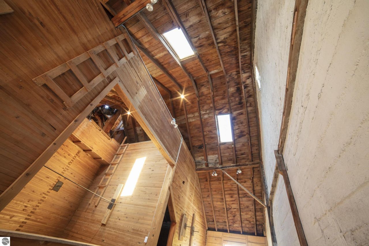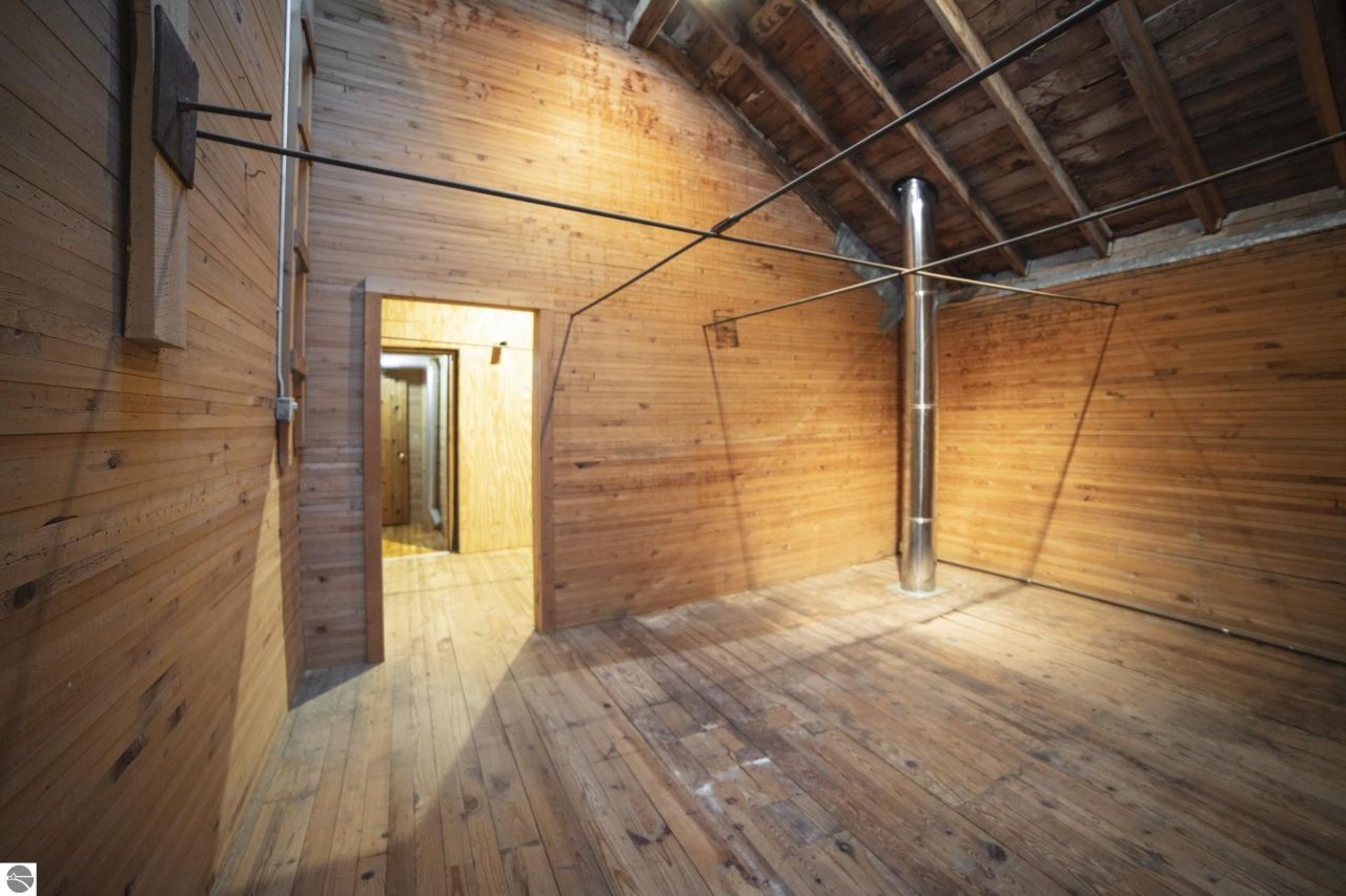 ncredible opportunity to revitalize this historic landmark in Beulah with your dream of an ideal work/live environment. Spacious, original commercial space with opportunity for rental or primary living space upstairs. Each bedroom has it's own private bathroom. Extra large heated warehouse with 14' garage doors for additional storage rental income. Located high on the hill with picturesque views of quaint downtown Beulah and Crystal Lake. This space, with its original wooden granary interior is so enchanting, your imagination will run wild with opportunity. Most recently used as an antique mall and wine tasting room, this space could be transformed into a unique vacation rental and captivating storefront. This building still draws the attention of year-round vacationers hoping to shop and experience the endearing scene that still exists within.