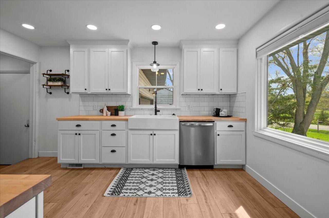 This extensively updated 4 bedroom, 2.5 bath mid-century ranch in the highly desirable Michigan Oaks neighborhood offers refined style and effortless living.The bright, open main level features fresh paint, abundant natural light, and a thoughtfully designed kitchen with soft-close cabinetry, butcher block countertops, stainless steel appliances, and durable LVP flooring. All four bedrooms are situated on the main floor, including a spacious primary bedroom with an ensuite bathroom.The partially finished lower level expands the living space with a second, spacious recreation room anchored by a fireplace, along with a half bath, laundry, and generous storage.Outdoors, enjoy a large fenced backyard with a deck, complemented by a welcoming front porch and a 2 stall attached garage for added convenience.Major updates include roof (2020), furnace/AC (2022), and water heater (2020). A turnkey opportunity in a prime location!