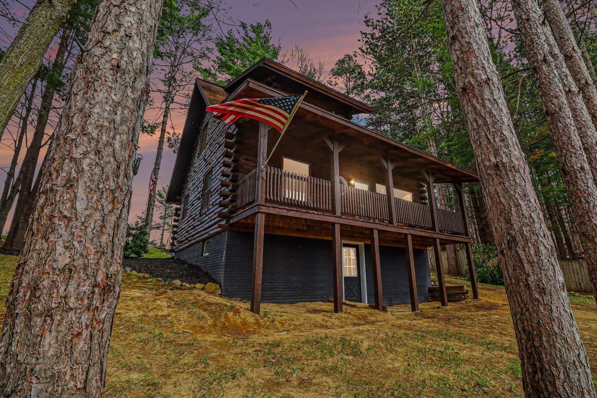 Escape to this fabulous log home offering the perfect blend of rustic charm and serene waterfront living. Step inside to an inviting open floor plan highlighted by soaring cathedral ceilings and a stunning staircase that adds to the homes character. The loft-style bedroom features a charming dormer window, creating a cozy retreat with a view.Beautiful details like a stained glass window add warmth and uniqueness, while the covered deck provides the perfect spot to relax and take in peaceful waterfront views. Nestled in a quiet, wooded setting on a no-wake lake, this property offers tranquility along with access to multiple connected lakes--ideal for fishing and exploring.The heated walkout basement adds extra living space and flexibility, making this home as functional as it is picturesque.