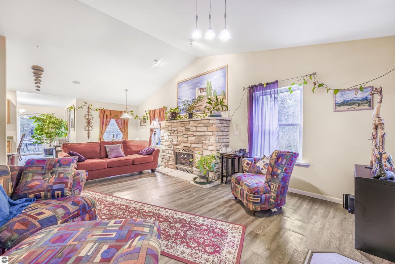 This high-quality, well-built and well-maintained ranch style home is tucked away in a peaceful, private setting on 12 acres completely fenced with woven wire and a solar powered entry gate. The 4-bedroom, 3-bath home was built in 2006 with energy-efficient 2x6 construction, R-24 wall insulation, and R-50 attic insulation, plus large energy-efficient windows all around to enjoy the breathtaking beauty of northern Michigan. The main level offers a primary suite with a private bath and dual walk-in closets, a spacious living room with a beautiful gas fireplace, formal dining, large pantry, and main floor laundry. The finished basement adds three bedroomsâ??including a second large suite with two walk-in closetsâ??a family room with a freestanding gas fireplace, and a third bath. Ideal for hobby farming, the property includes a 30â??x40â?? pole barn with wood stove, 30'x60' hay barn, chicken coop with solar door, 2 goat barns,12 acres with fenced pastures, woods, apple trees, and a large fenced garden. Excellent location only minutes away from Crystal Lake, Crystal Mountain, Betsie River, Platte River, and Benzie Central Schools!