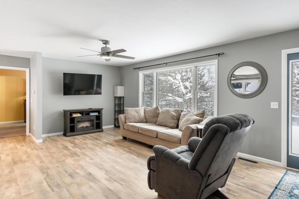 Tucked away on 6 mostly wooded acres, this inviting ~2106 total finished square foot ranch-style home offers the perfect blend of privacy, space, and convenience?just five minutes from downtown. Surrounded by mature trees and natural scenery, the setting feels peaceful and secluded while still providing quick access to schools, shops, dining, and everyday amenities. The home is thoughtfully designed for main-level living, featuring three well-sized bedrooms and two full bathrooms on the main level. An open and functional layout creates a comfortable flow between living spaces, making the home ideal for both everyday living and entertaining. Large windows bring in abundant natural light and offer tranquil views of the surrounding wooded landscape. The full basement adds significant versatility and value, with partial finishing already complete. A dedicated workout room provides a convenient space for fitness or hobbies, while the remaining basement area offers ample storage with room to expand?perfect for a workshop, recreation space, or future finishing to suit your needs. Outside, the acreage provides endless opportunities to enjoy the outdoors. Whether you envision walking trails, gardens, recreational space, or simply relaxing in nature, the mostly wooded lot offers privacy, shade, and a true connection to the outdoors. The generous land size also allows for potential outbuildings or future enhancements. This property is ideal for those seeking a quiet, rural feel without sacrificing proximity to town. With its manageable size, flexible layout, and exceptional setting, this ranch-style home offers a rare combination of comfort, functionality, and location.