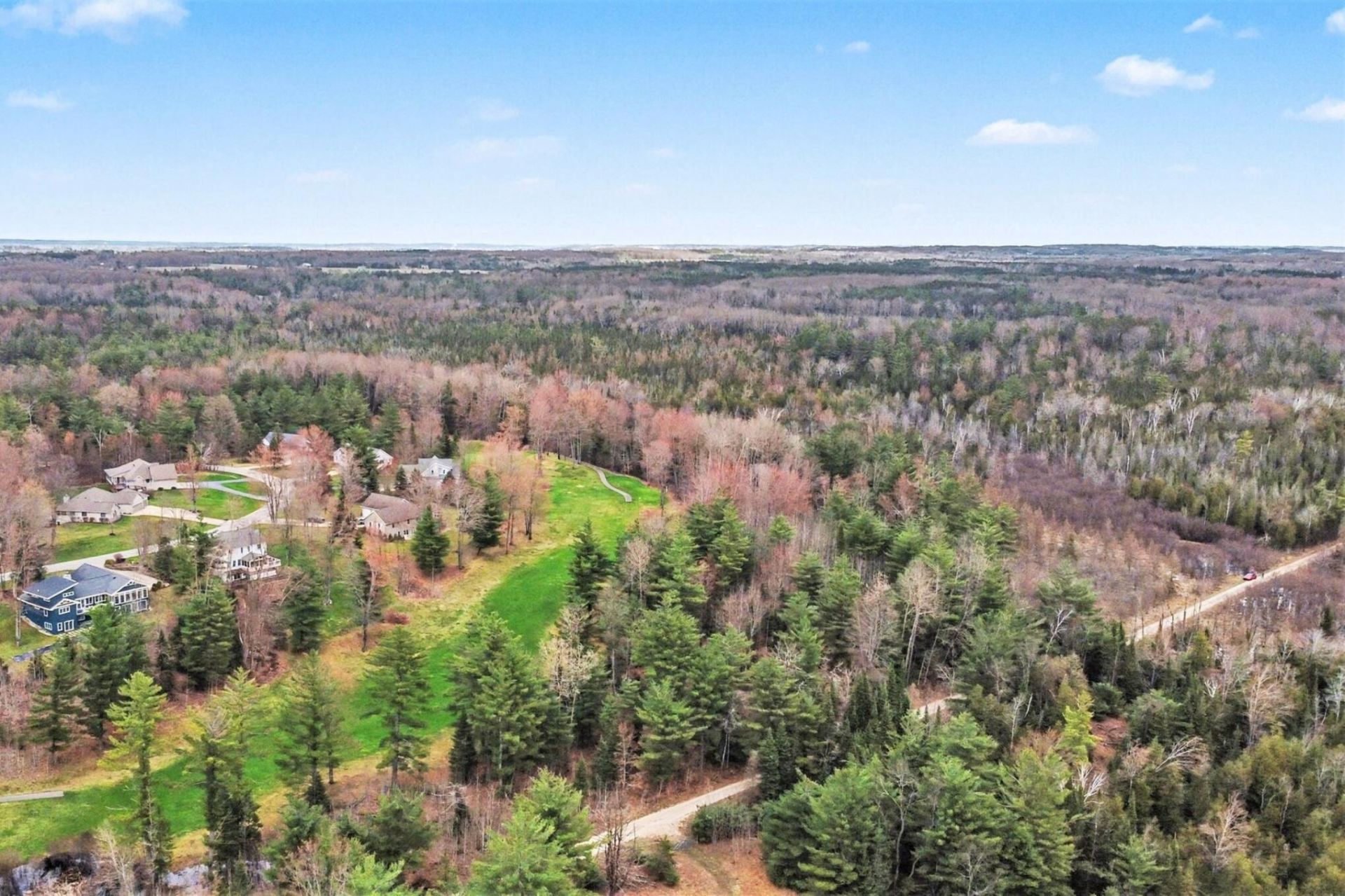 Positioned along East 48 1/2 Road in Cadillac, this 3.29-acre wooded parcel directly adjoins Lakewood on the Green Golf Course. With roughly 476 feet of public road frontage, the property provides an extended stretch of access along a quiet road while opening into a naturally wooded interior. The landscape is defined by a mix of mature trees and natural cover, creating a setting that feels private and consistent throughout the parcel.Bordering the golf course, the property benefits from a unique neighboring landscape that adds to the overall setting while maintaining separation through tree cover. The layout offers a balance of wooded surroundings and nearby open space, giving the land a distinctive character from front to back.Positioned in the Cadillac area, the location provides access to nearby lakes, recreation, and the broader Northern Michigan region while maintaining a more relaxed setting.Boundaries are shown for reference.